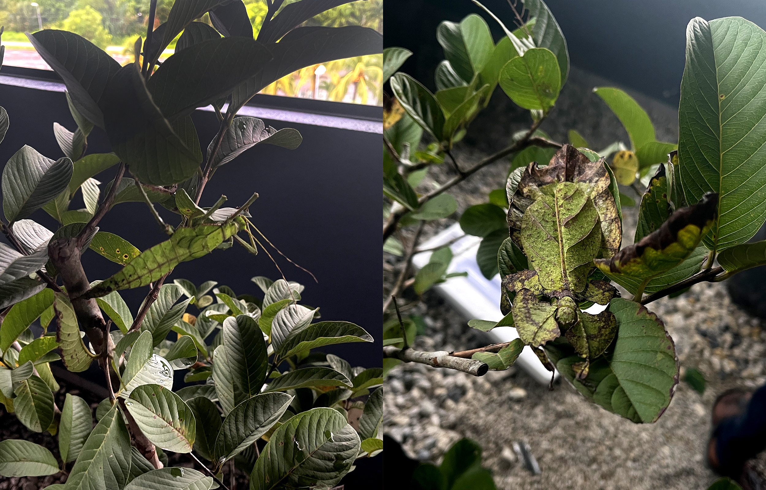 仔细观察隐藏在绿叶中的丛林若虫和叶虫