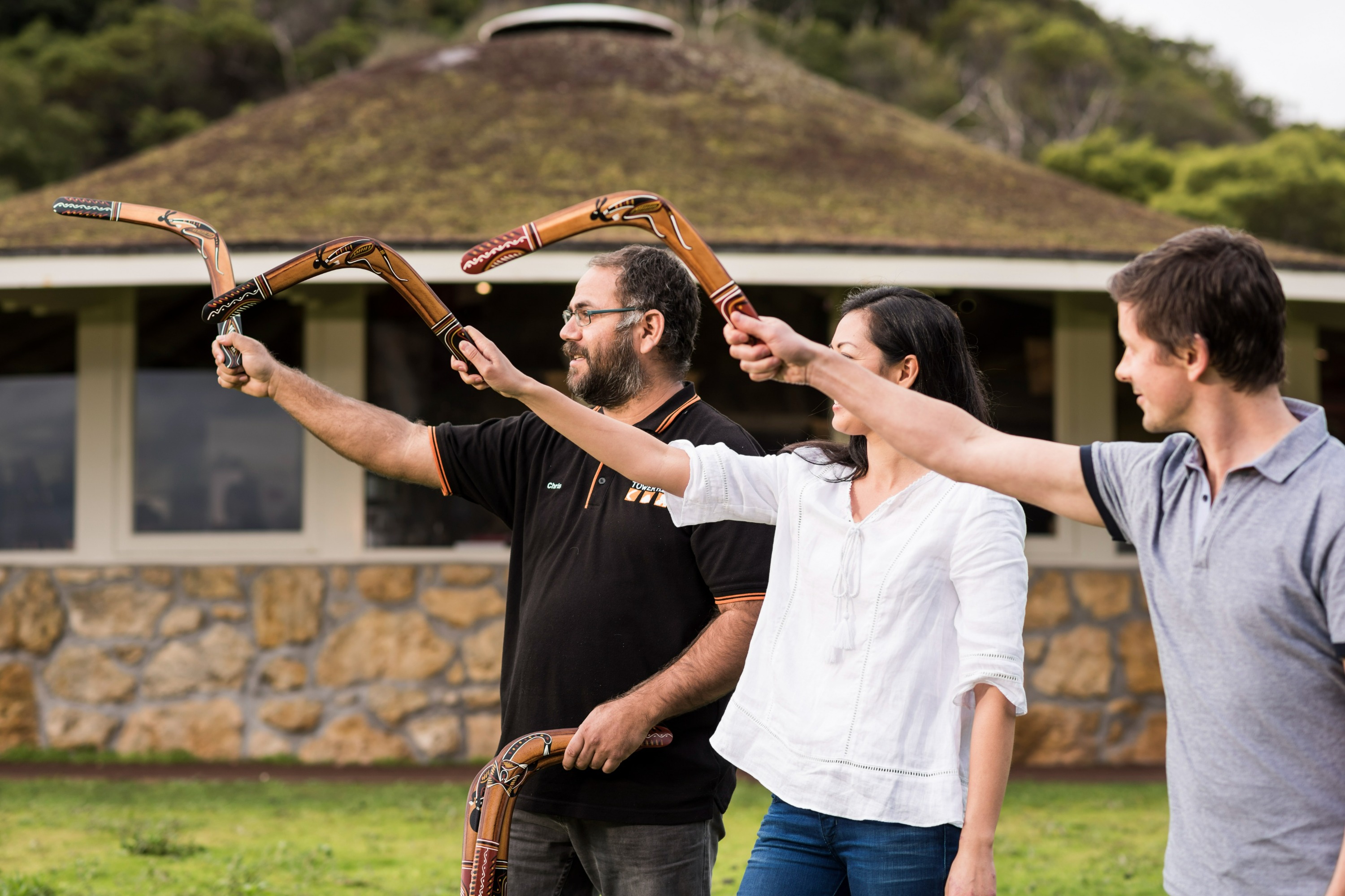 在充满乐趣的课程中掌握在塔山风景中投掷回旋镖的技巧