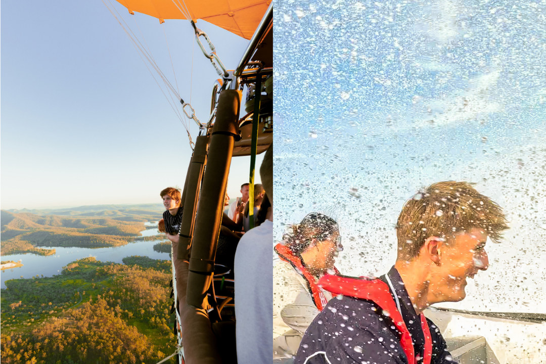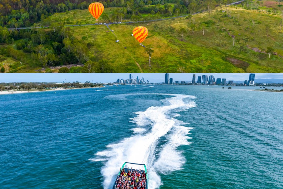 Hot Air 的黄金海岸热气球和 Arro-Jet 划船组合将静谧与冒险完美结合。日出时分,飞越风景秀丽的黄金海岸腹地,欣赏连绵起伏的山丘、森林和水道的壮丽景色。然后,乘坐惊险刺激的 Arro-Jet 划船,在黄金海岸的水道上急转弯,体验刺激的快感。这种难忘的体验将宁静祥和与刺激刺激融为一体,是享受黄金海岸壮丽美景的最佳方式。