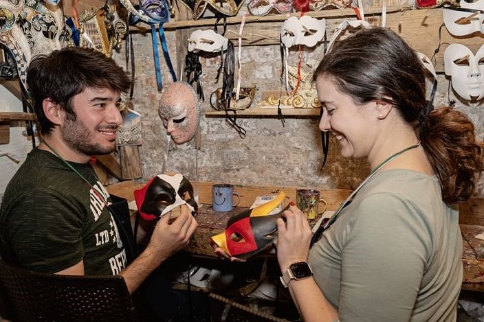 参观位于标志性圣马可广场附近历史悠久的普里吉奥尼宫 (Palazzo delle Prigioni),沉浸在威尼斯丰富的文化遗产中。在里面,参加由威尼斯熟练工匠乔治 (Giorgio) 领导的独家面具制作工作坊。探索传统面具装饰的迷人世界,使用各种材料,如充满活力的油漆和闪闪发光的闪光。在乔治的指导下,学习古老的技术来制作自己独特的作品。这种动手体验不仅向您介绍威尼斯面具的艺术性,还可以让您设计个人化的纪念品。将您在普里吉奥尼宫 (Palazzo delle Prigioni) 令人惊叹的环境中创作的定制杰作带回家,感受威尼斯的艺术灵魂