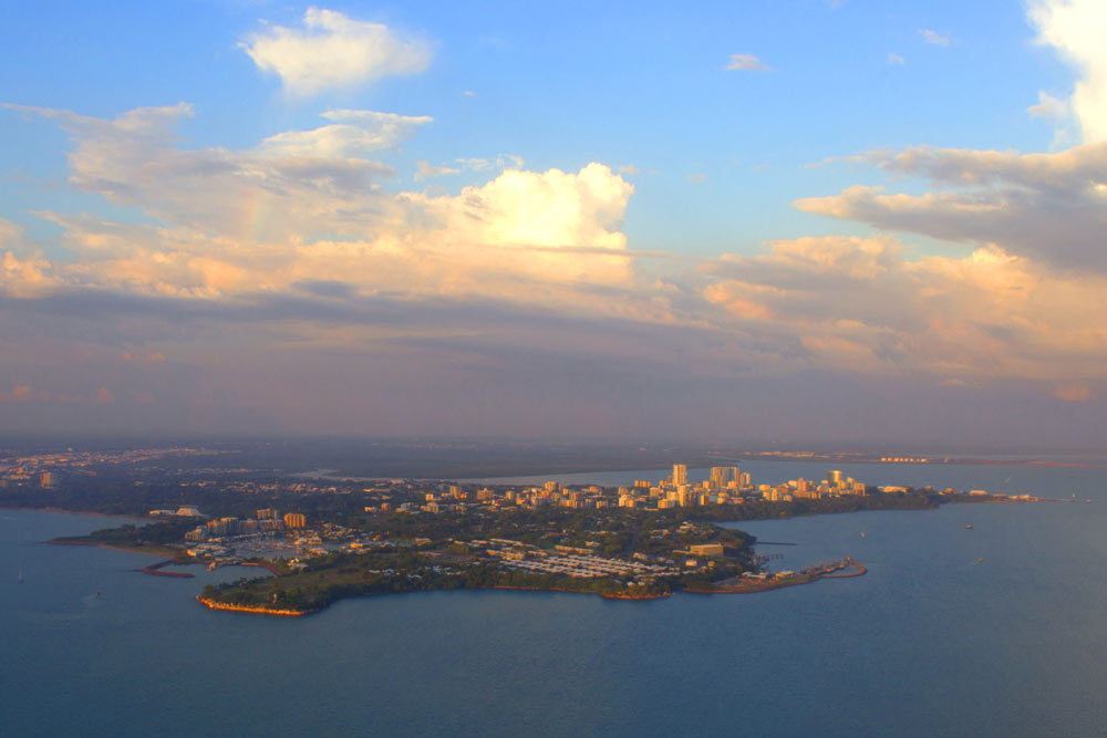 从我们游船的甲板上惊叹于达尔文天际线和海滨的壮丽景色
