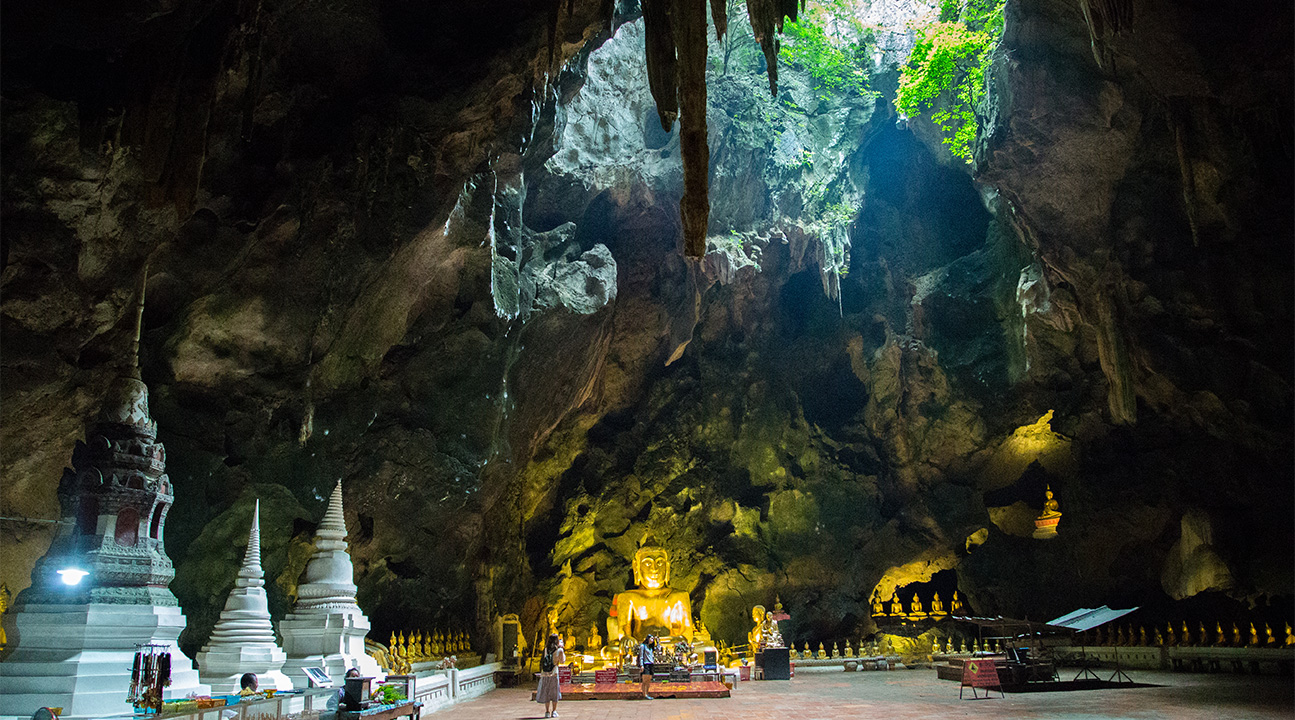进入考銮洞它以其全金制成的大型佛像而闻名。
