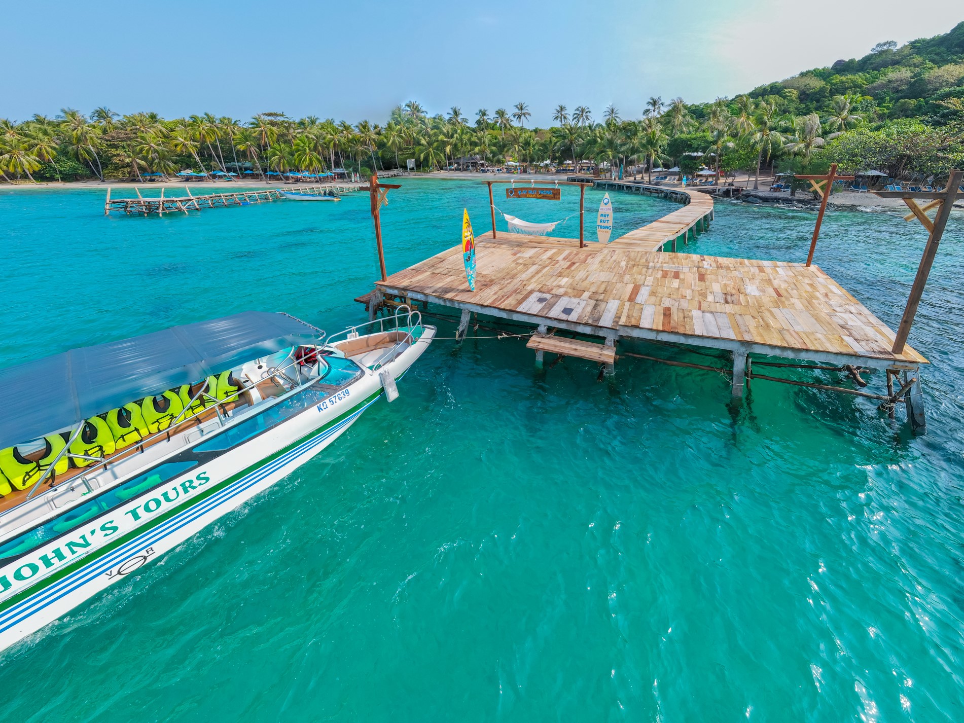 搭乘快艇,体验刺激的富国岛最美岛屿之旅!您可以选择饭店接送来开始您的冒险之旅,或直接前往集合地点。抵达安泰港 (An Thoi Harbor),沿着清澈的海水快速行驶。测试您的钓鱼技巧并尝试捕捉鲷鱼、王鱼、甚至是大海鱡!接下来前往指甲岛,在那里您可以享受日光浴并在温暖清澈的海水中游泳。继续在 Dam Ngang 岛体验刺激的浮潜探险,在大海中畅游!接下来停靠在 May Rut 岛,享用美味的泰式午餐,包括蒸虾、炒糖醋鱿鱼、新鲜水果等!旅程结束时,您将乘船返回港口,然后安全返回酒店或集合地点。