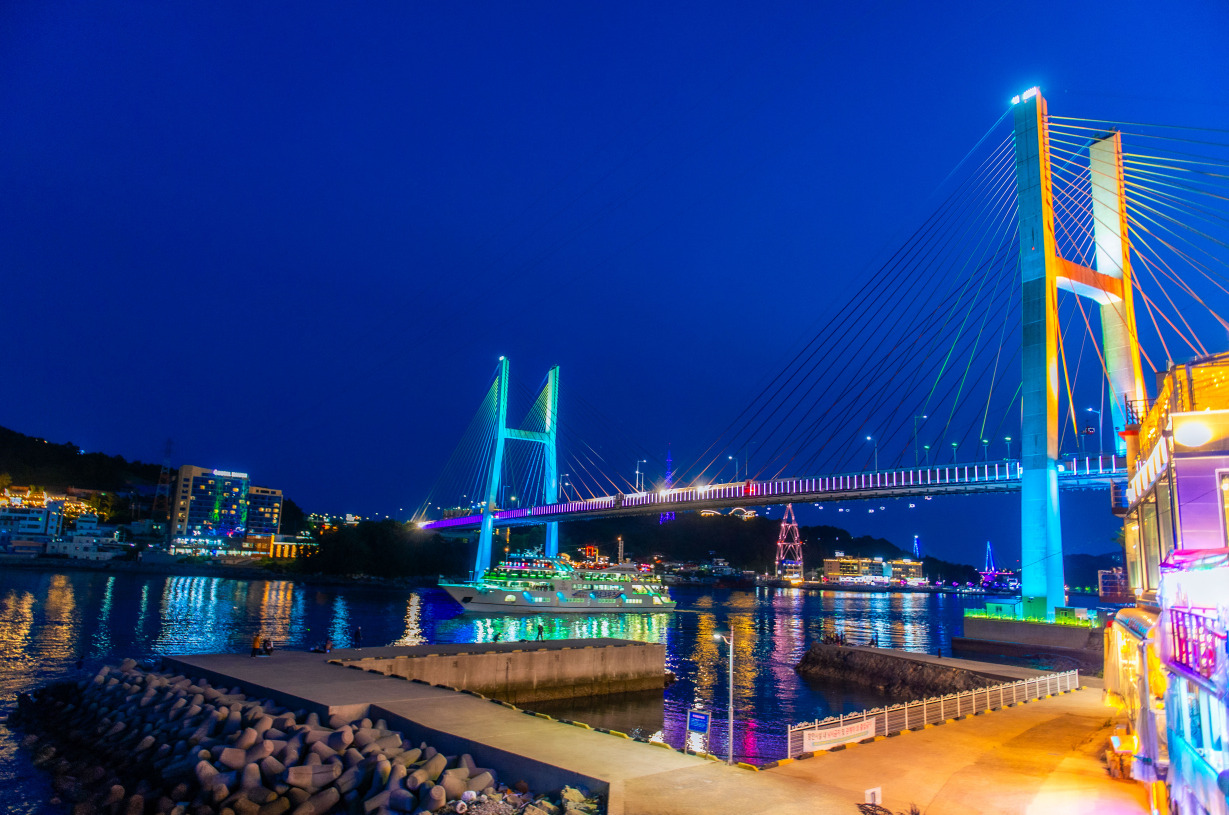* 丽水海上缆车是韩国第一座海上缆车,跨越海洋连接突山岛和大陆。