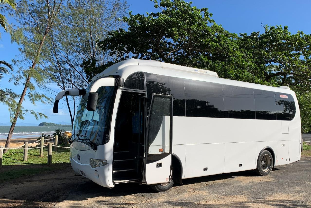 乘坐巴士穿过敦克岛郁郁葱葱的风景