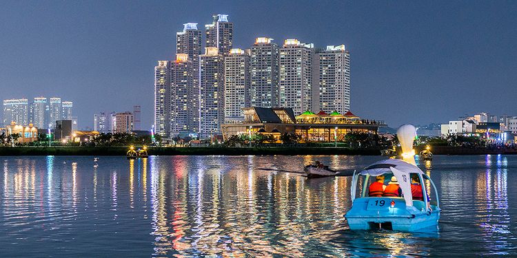 是大邱代表性的生态湖滨公园,有2公里的滨水步道,晚上倒映在水面上的美丽灯光