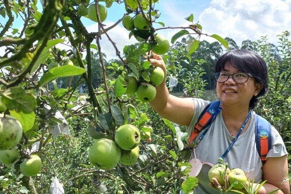 这个旅游胜地有各种类型的苹果,你可以随意采摘和食用