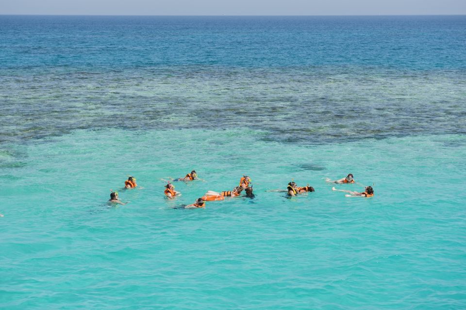 到达第一个浮潜点,准备好装备并穿上救生衣。潜入色彩斑斓的红海世界,然后再次上船前往下一站。沿途与顽皮的海豚相遇,在该地区最好的珊瑚礁处共有 3 个浮潜点。