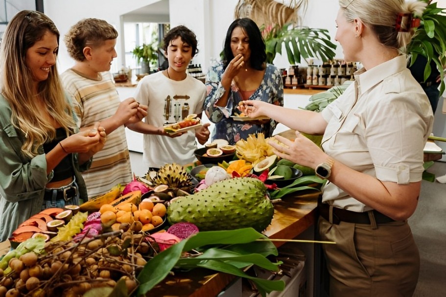 搭乘拖拉机火车探索果园,并在全程导游陪同下品尝异国水果