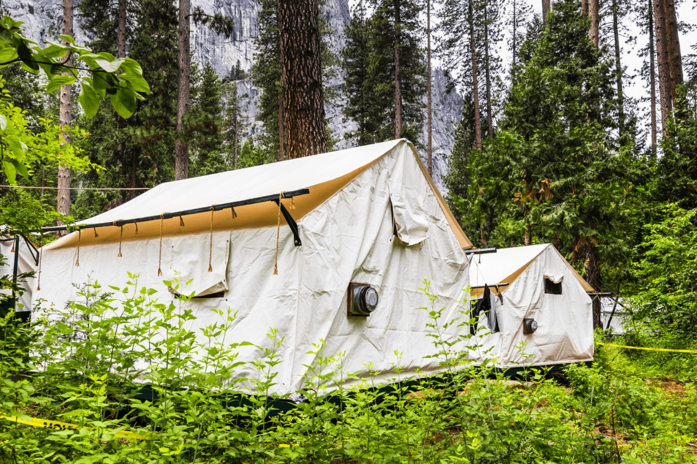 Curry Village Tent Cabins in Yosemite Valley is nestled among the pines tree and surrounded by nature