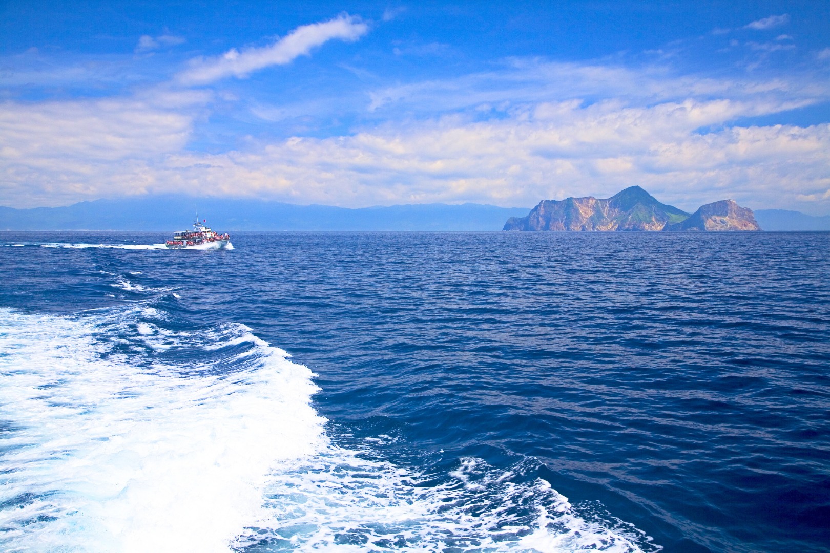 搭乘赏鲸团绕龟山岛,幸运的话可以看到成群的海豚!