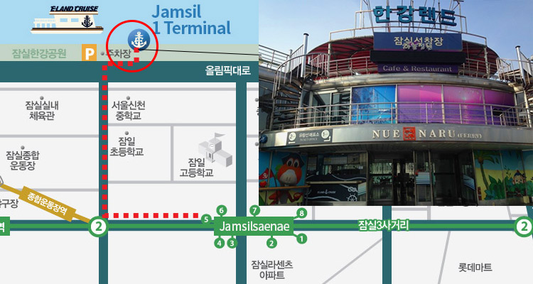 • 游船路线:蚕室 – 圣水大桥 – 蚕室