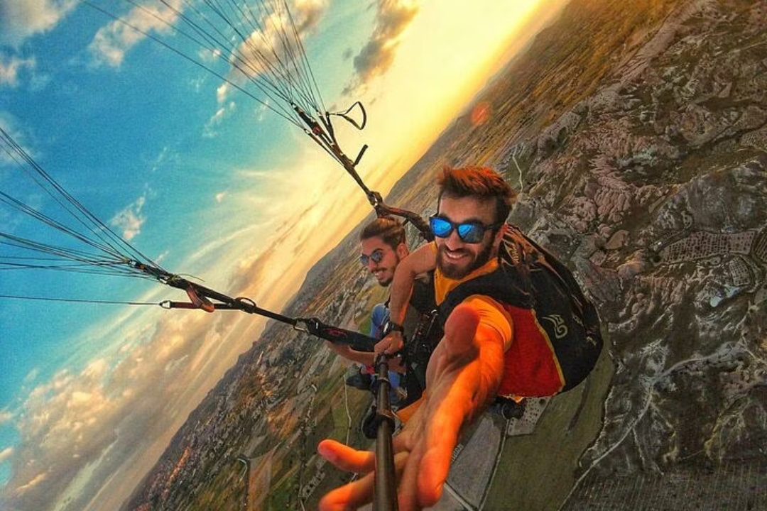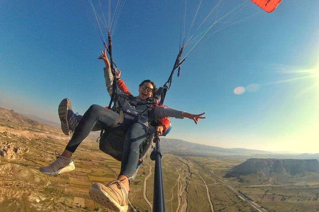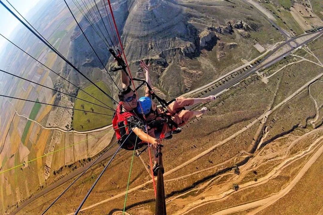 想象一下像鸟儿一样翱翔在卡帕多西亚超凡脱俗的风景之上。滑翔伞让您摆脱吊篮,与专业人士一起飞行,鸟瞰壮观的山谷、雕刻的仙女烟囱和古老的洞穴住宅。感受起飞的刺激和滑翔的失重感,同时呼吸新鲜空气并欣赏全景。这次难忘的体验让您以独特的视角领略卡帕多西亚的魔力,让您留下终生难忘的回忆。