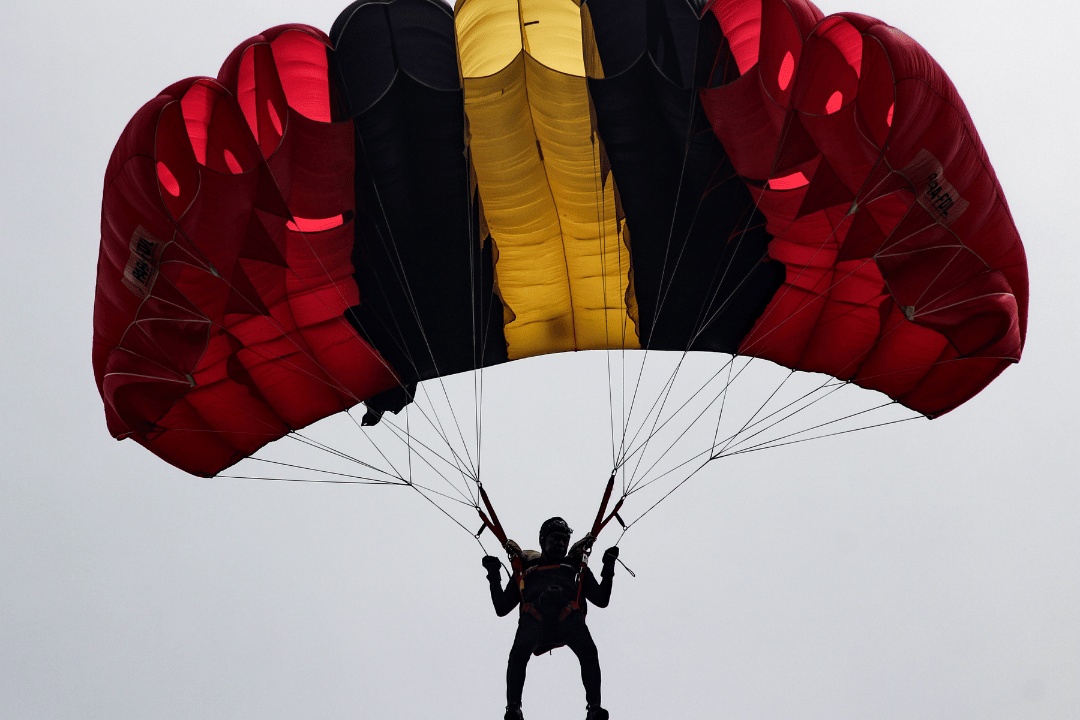 快乐的游客带着降落伞飞行