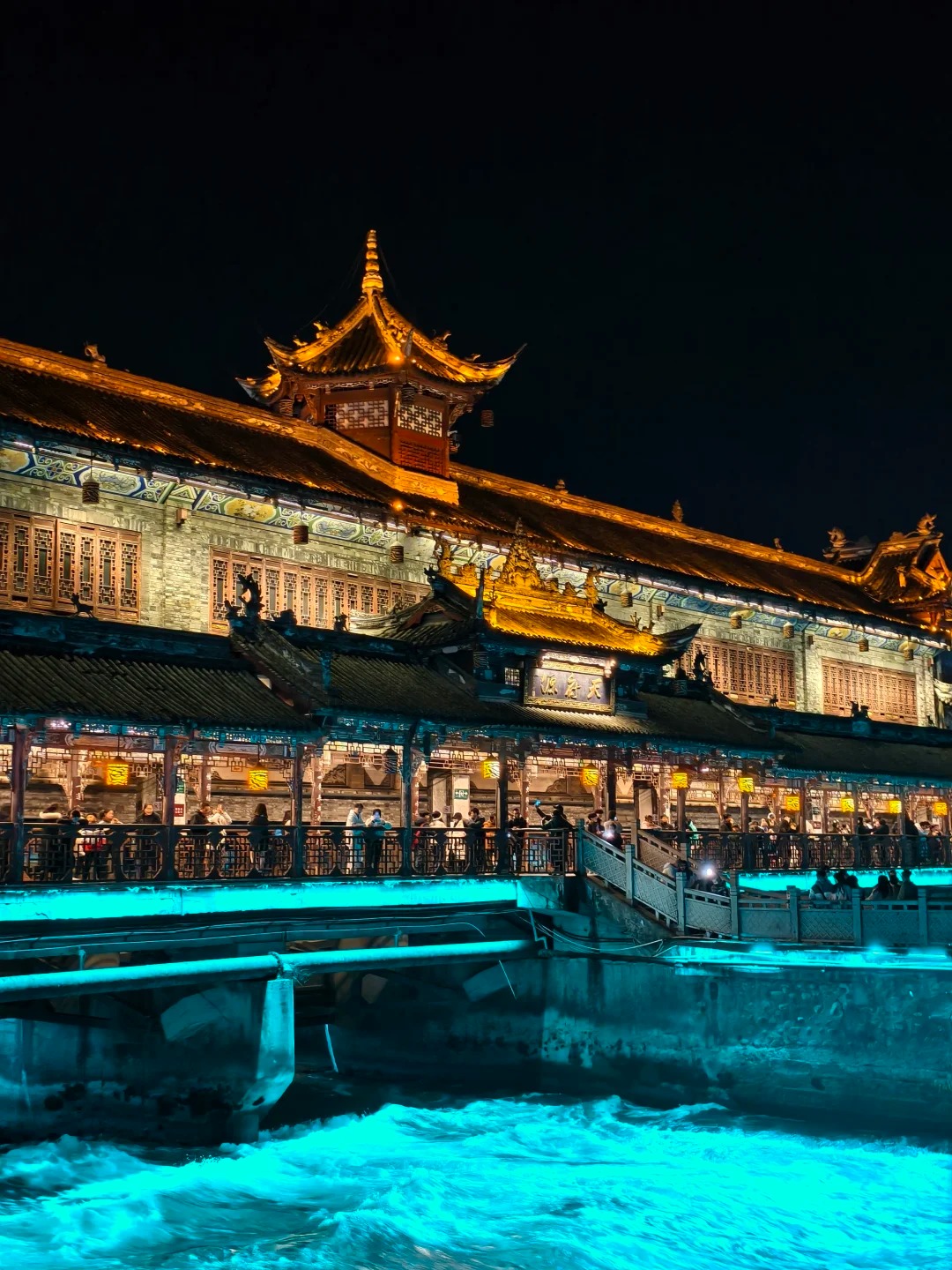 若您参加夜景团,可前去游览都江堰南桥“蓝眼泪”