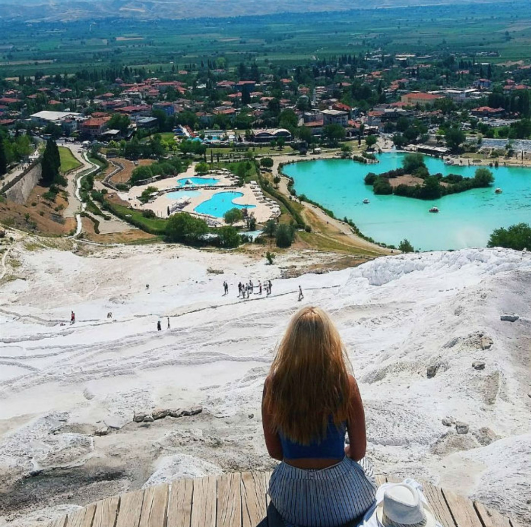 到达靠近帕姆卡莱的小镇代尼兹利后,欣赏令人惊叹的风景