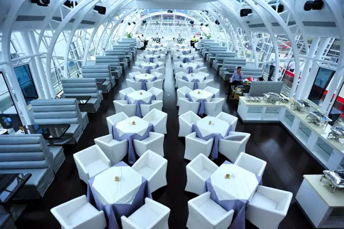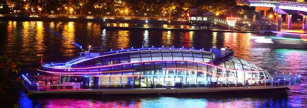 游客朋友登船临风,可欣赏到广州塔、海心沙、广州大桥、猎德大桥、等广州标志性景观建筑及广州城市的璀璨夜景