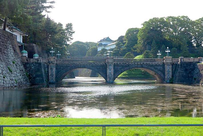 “二重桥”一般是这两座桥的总称,但严格来说是指奥之桥,曾被称为“艺物桥”,因用来支撑桥梁而得名。因为它是双层结构,中间有一个平台。从停车场步行进入广场内。