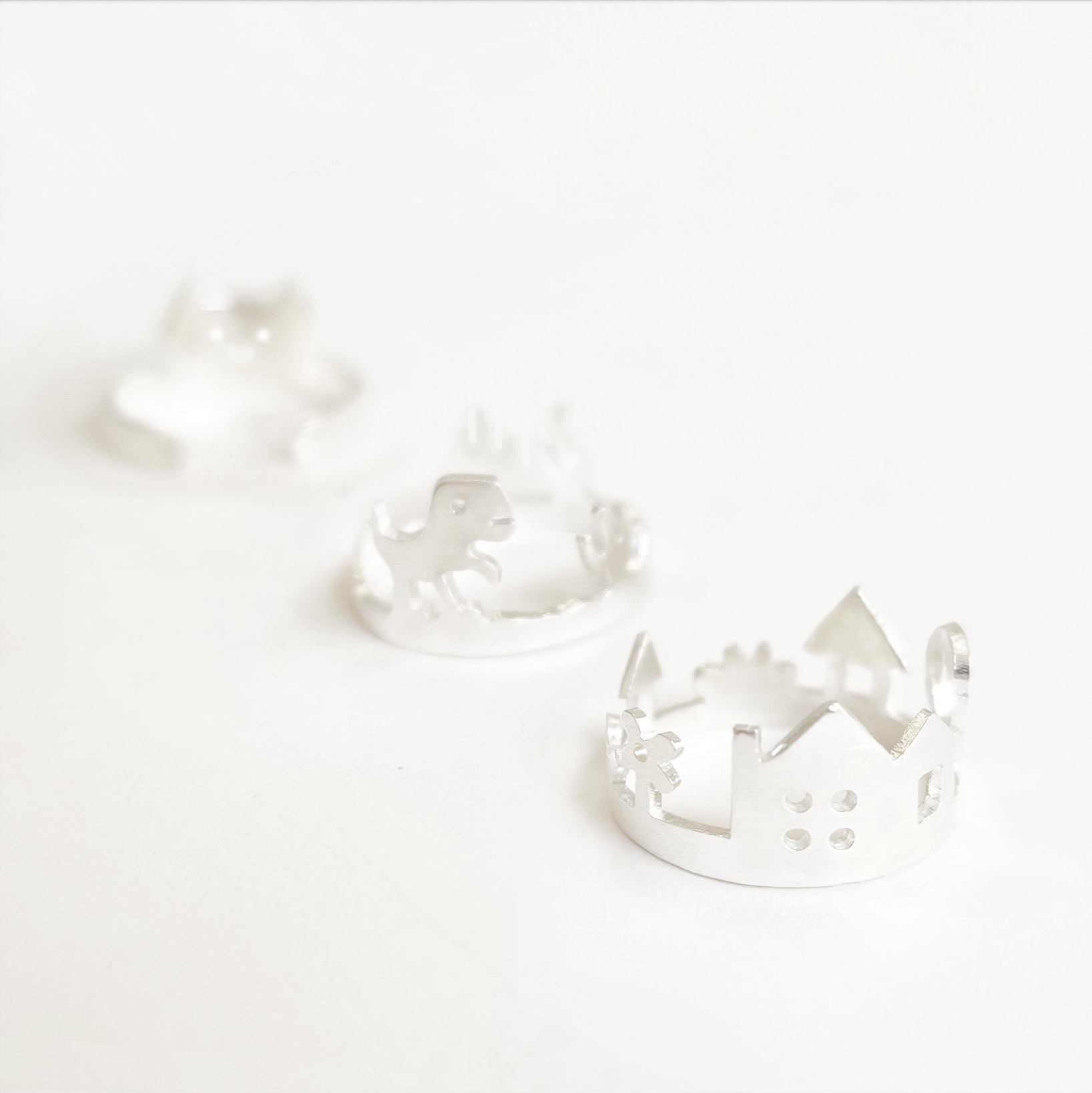 同学到达工作室后,可以先穿上围裙,看一下完成样板及过往其他同学的制成品。导师会跟同学沟通并了解同学希望达到的效果。工作坊开始时,导师会逐步示范及带领同学使用各种工具。同学将会学习到不同传统金工技巧 :如退火、 线锯切割、 敲花、 锉磨、 球面成形等;并可以尽情体验职人的日常!完成作品后,作品将会附有基本包装盒或绒布袋 、保养说明小卡及拭银布。导师亦会教授保养银饰、作品的小贴士。在疲惫的课后,同学亦可以饮用我们提供的饮品,补充体力。