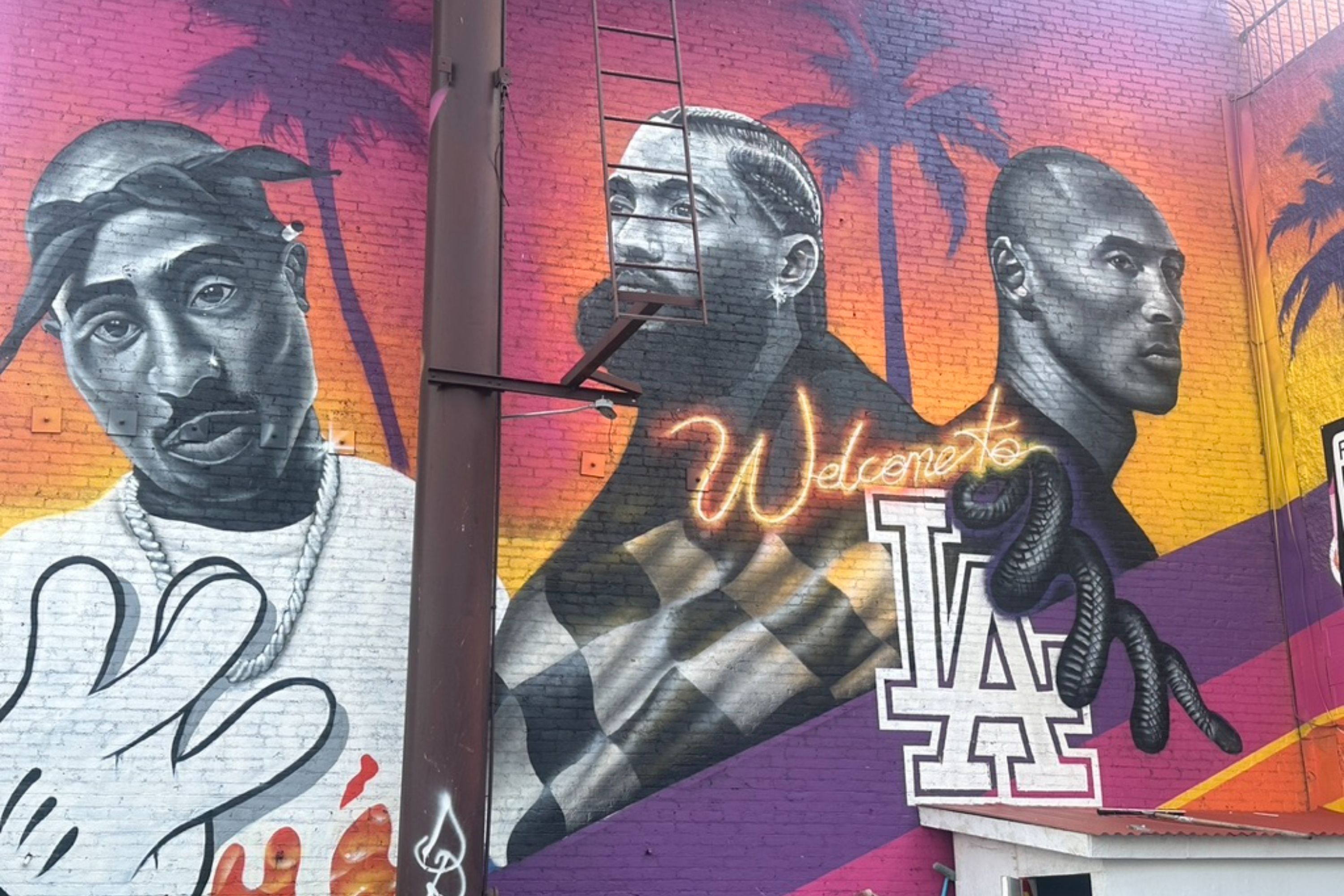 洛杉矶市中心的街道上装饰着巨大的壁画