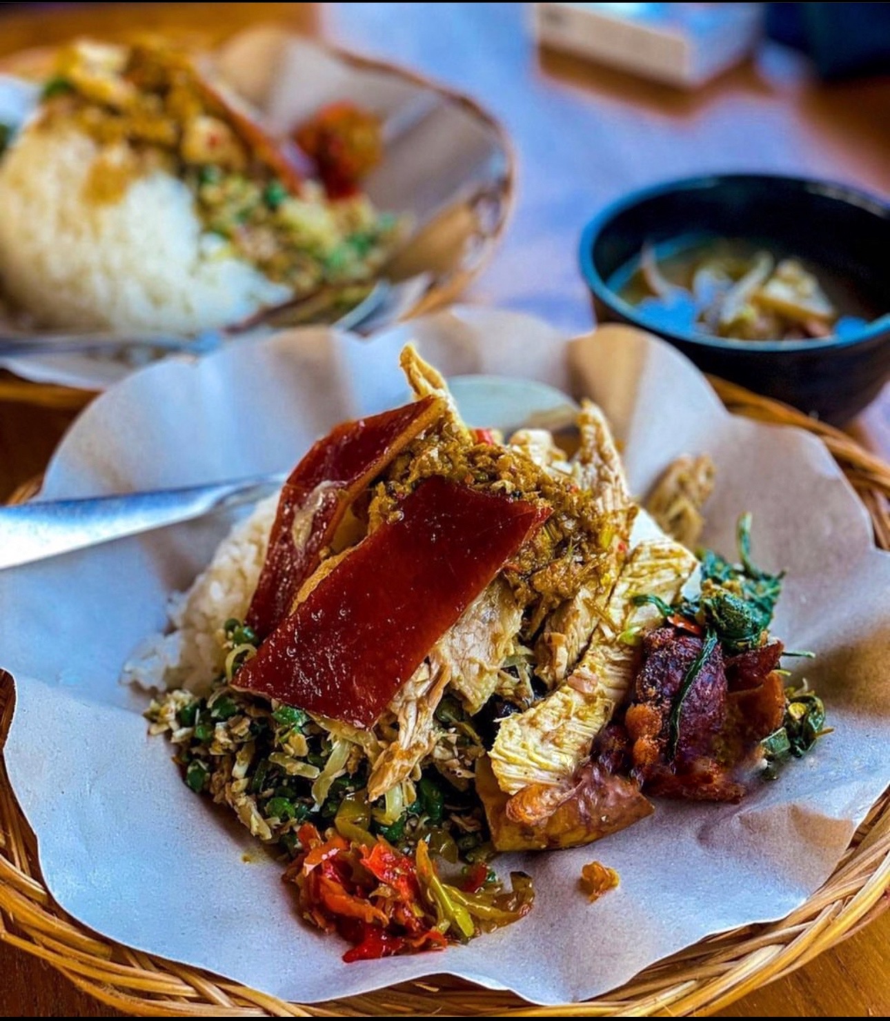 最后但并非最不重要的是,品尝乌布著名的乳猪来结束您的一天,乳猪以其浓郁芳香的风味而闻名,将烤肉的烟熏味与腌料中使用的芳香香料相结合。