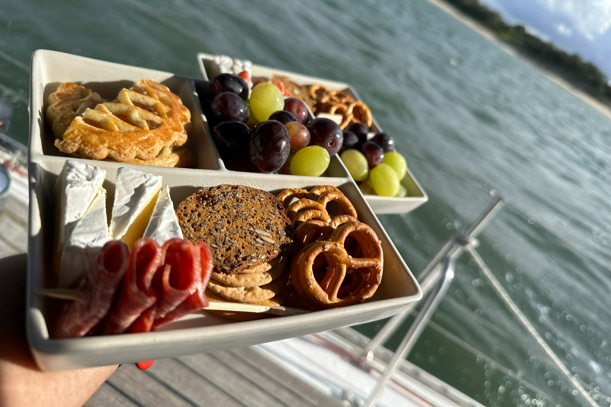 在我们悠闲的午间海岸巡游中享用美味小吃