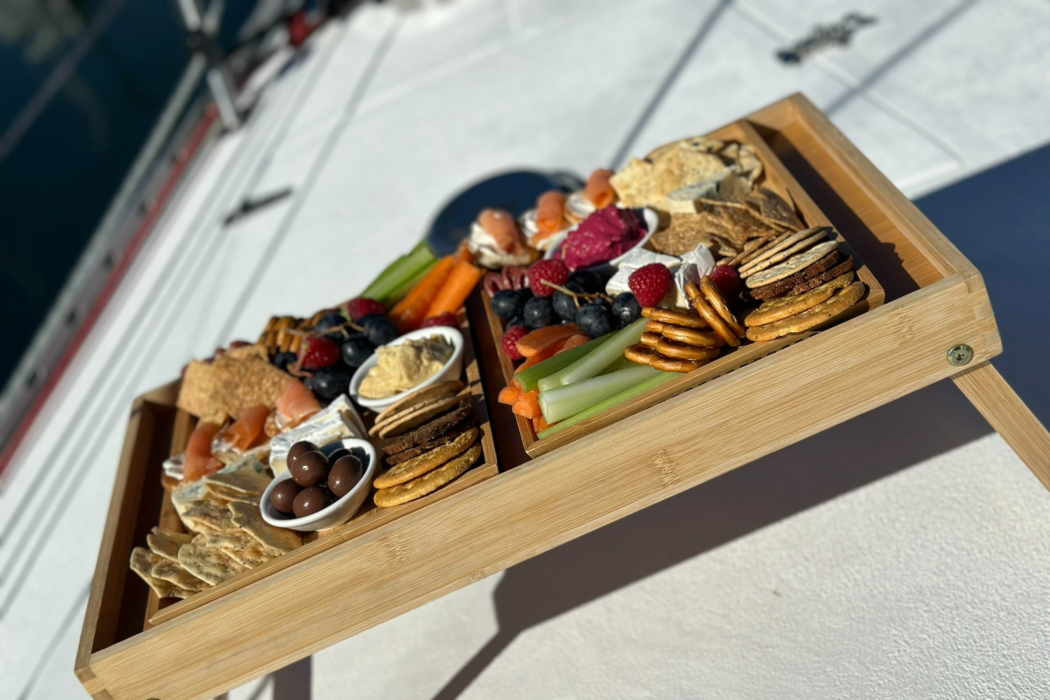 在午间游轮上品尝丰盛的小吃,欣赏壮丽的景色