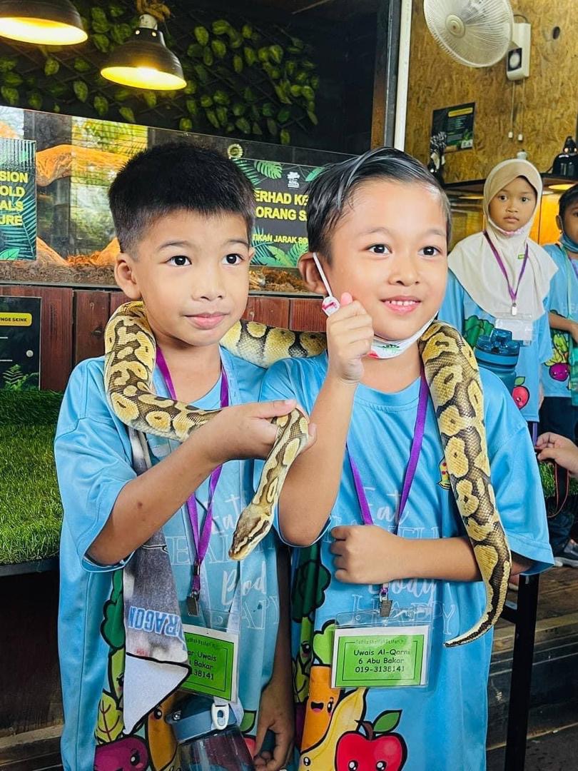 孩子们可以体验把蛇挂在脖子上并触摸它