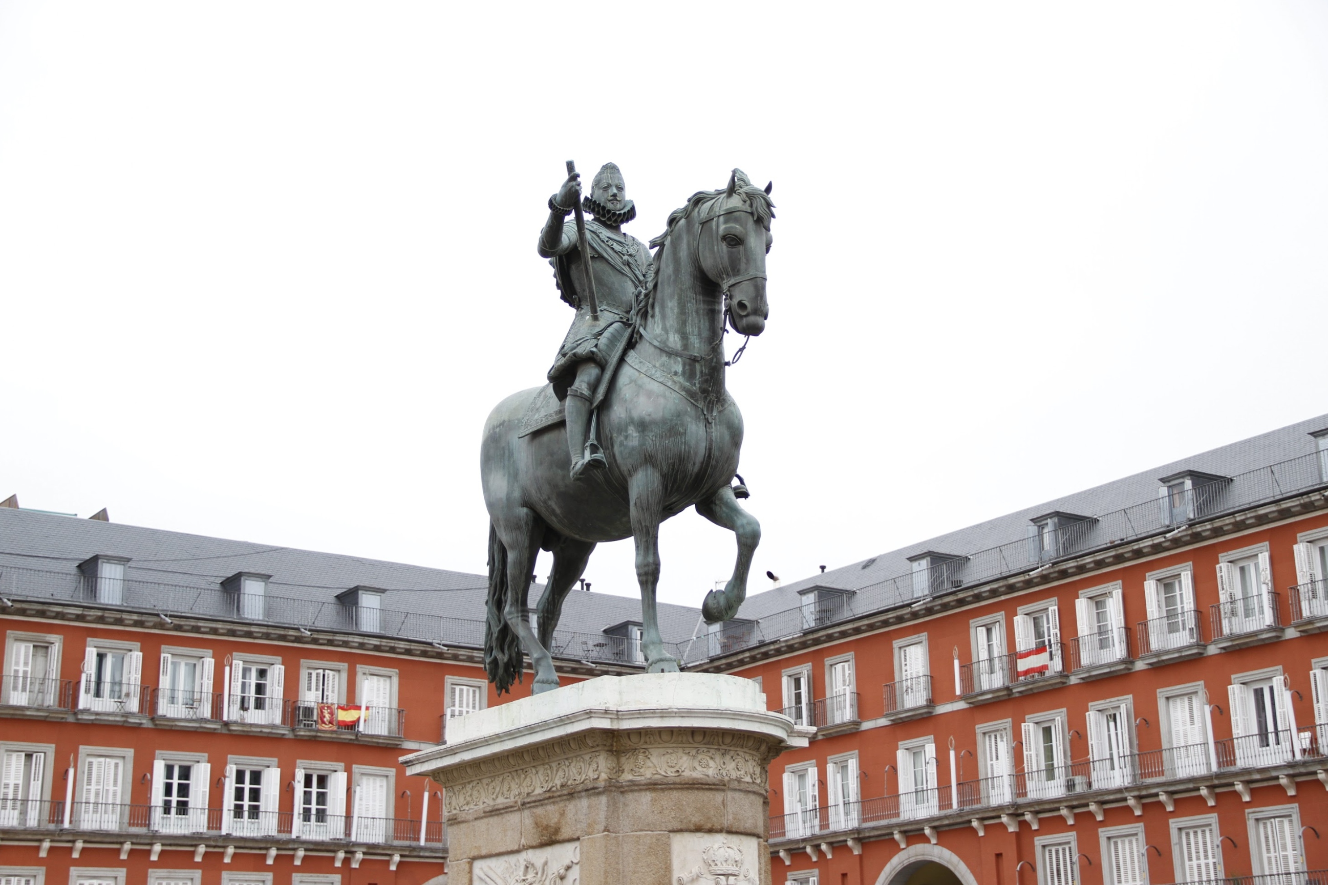 欣赏马德里标志性马约尔广场上费利佩三世雕像的富丽堂皇