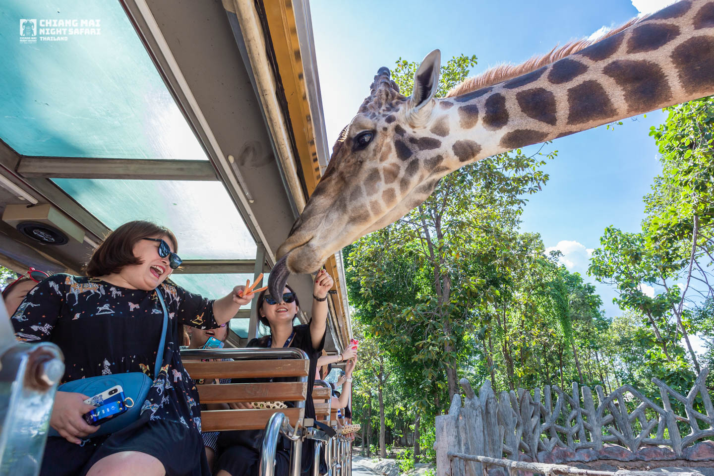 与长颈鹿等热带草原动物近距离接触