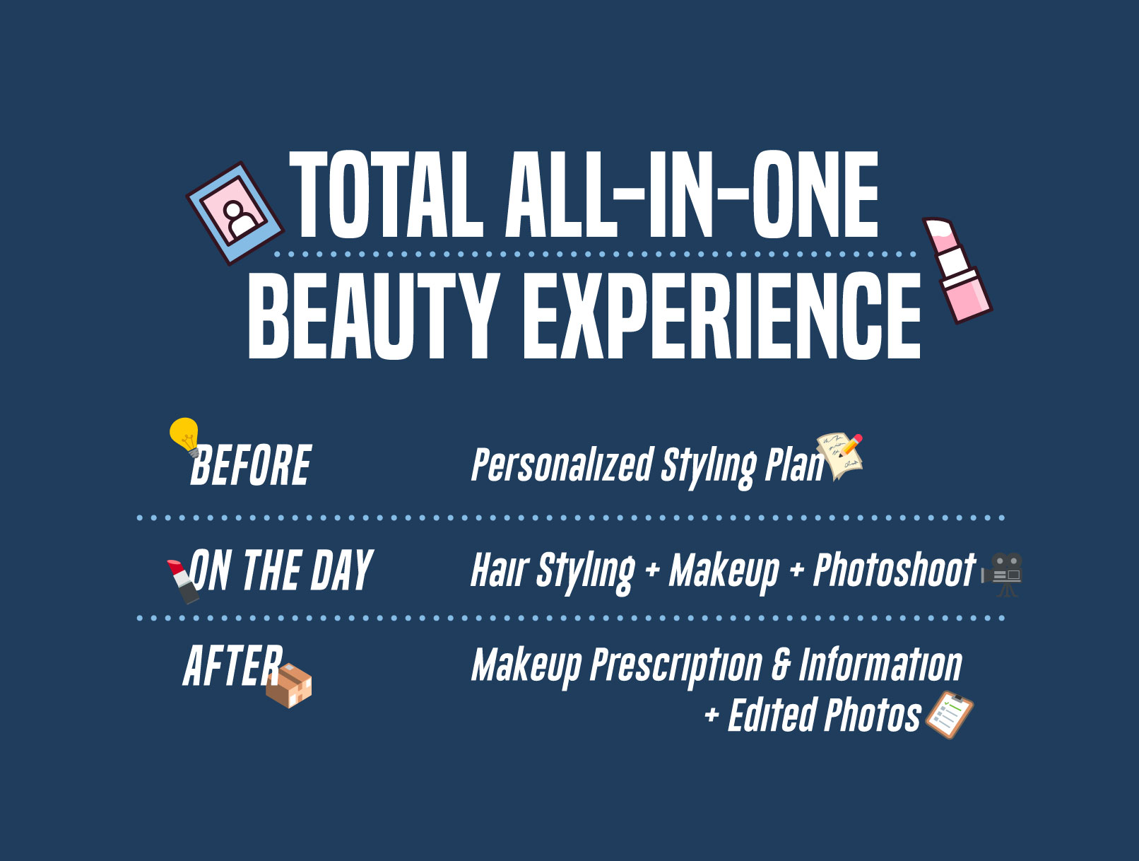 - 我们的独家套餐提供专业**化妆、发型设计**和**摄影**,灵感来自您最喜欢的韩国男孩明星