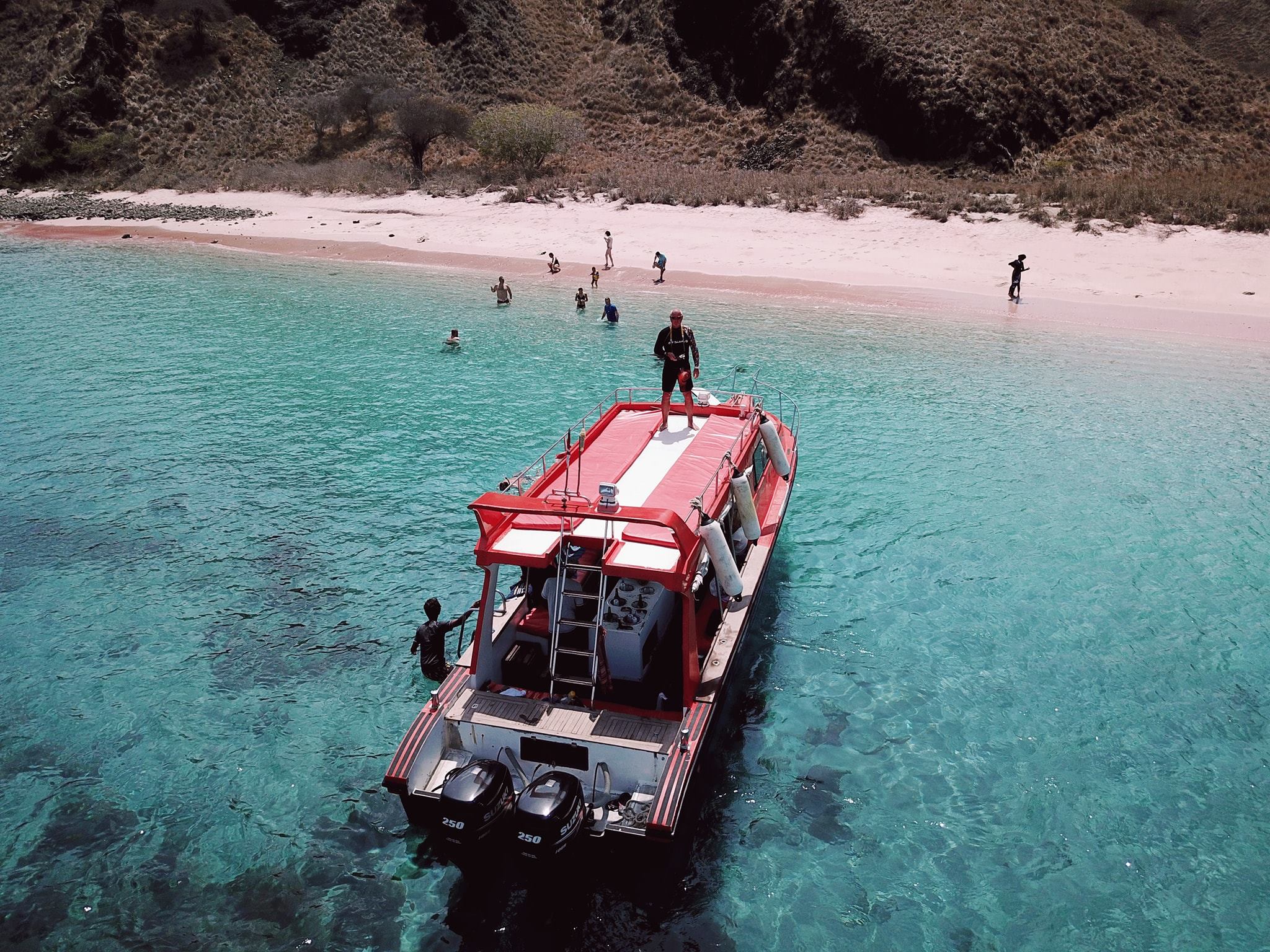 红鲸一号快艇的鸟瞰图,它已准备好带您探索岛屿!