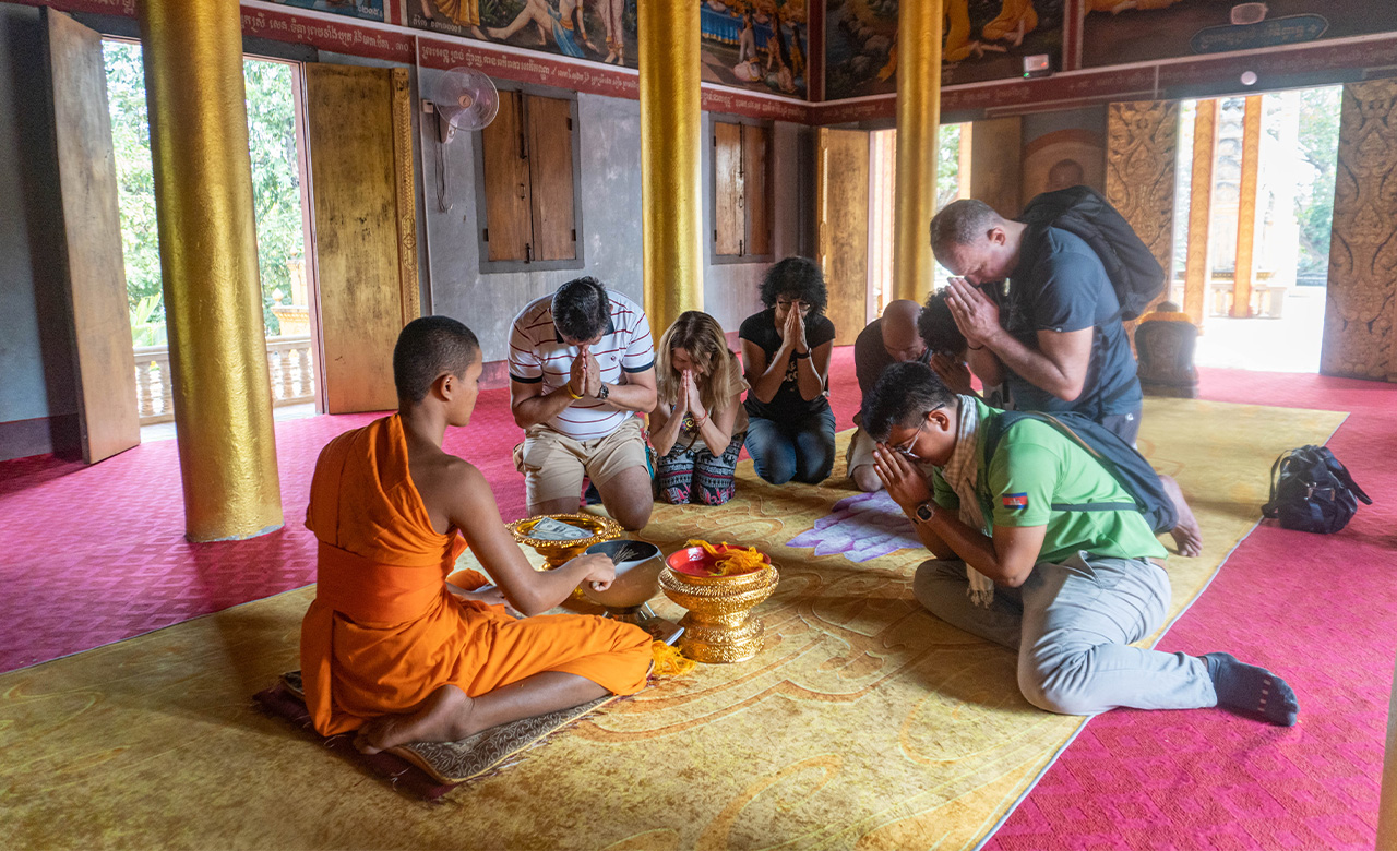您将探索古老的佛教寺庙,以了解高棉人的佛教习俗,获得僧侣的精神祝福,并聆听高棉人的算命。