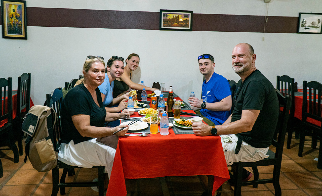 最后一站,我们将带您前往当地一家名为 Romdeng 的餐厅,享用美味的午餐,您可以在返回酒店之前点一份高棉食物。