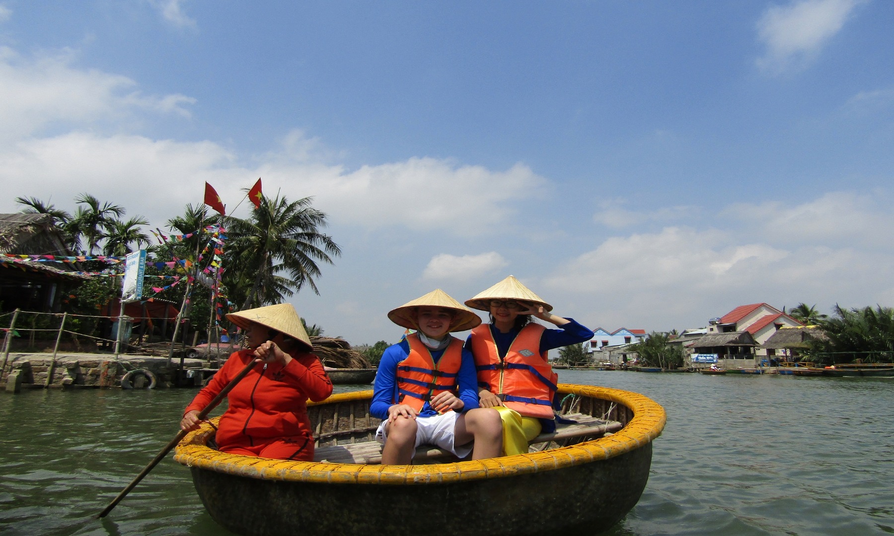乘坐传统的篮子船欣赏椰子林的壮丽景色!