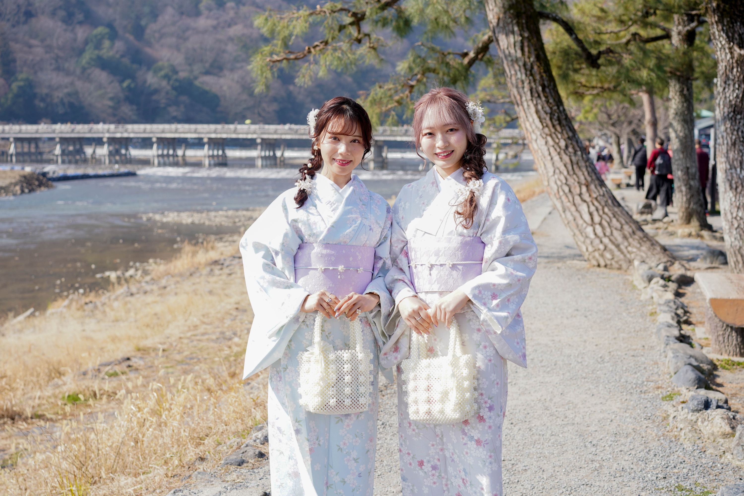 会讲中文和英语的接待人员将热情欢迎您的光临。请从众多的和服中找到您最喜欢的和服。专业的造型师会为您量身定制和服,专业的美发师会为您做头发,让您焕然一新。之后我们就去渡月桥和竹林拍照啦!拍完在日本的美好回忆后,回到商店换衣服。
