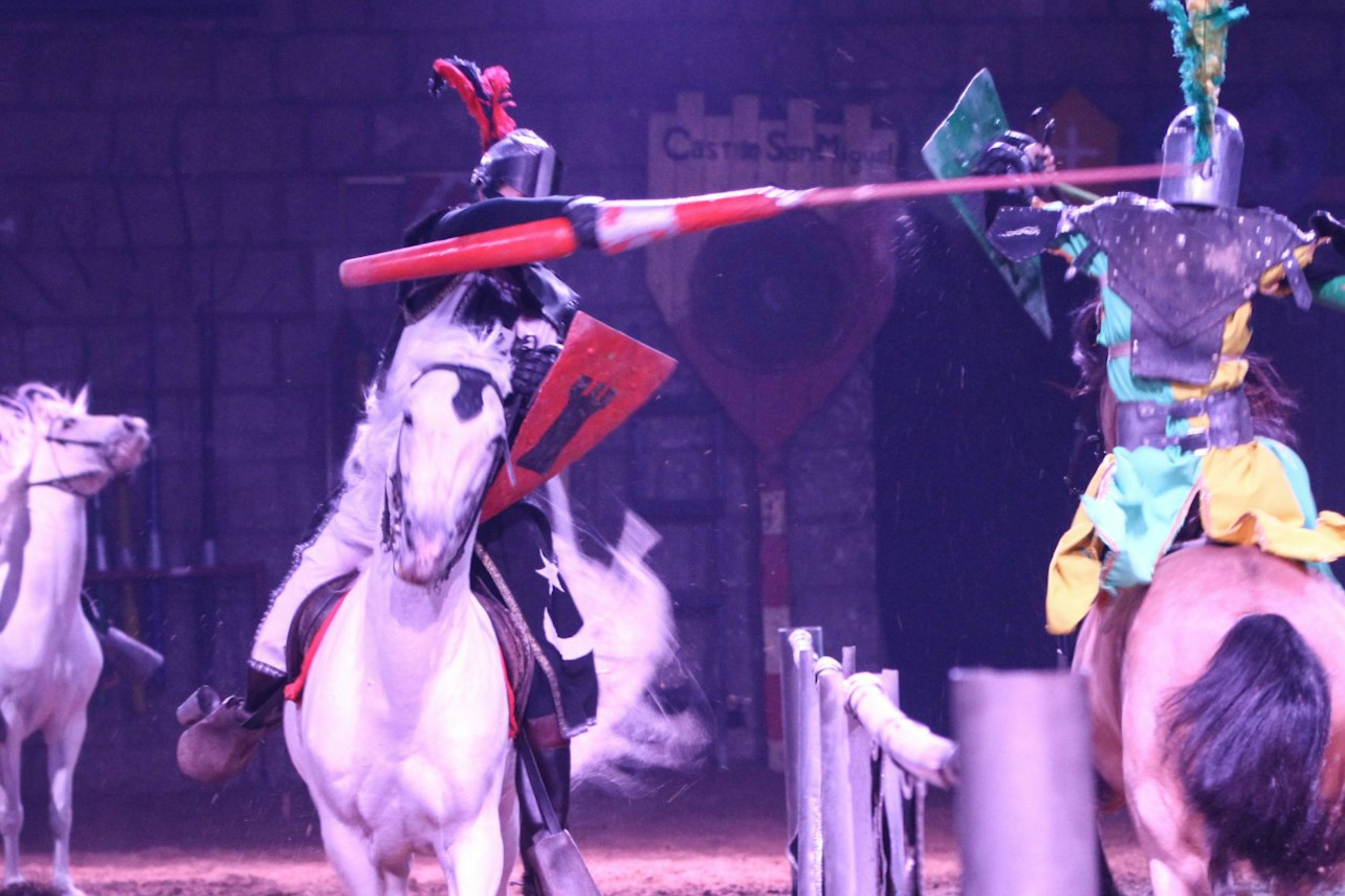 踏入城堡大门,您将受到罗德里戈伯爵和他的女儿伯爵夫人的欢迎,踏上穿越时空的旅程。城堡入口装饰着当时的盔甲、剑和古代文字,为您带来真实的中世纪体验。在罗德里戈伯爵彬彬有礼的臣民的带领下,您将在锦标赛大厅观看激动人心的锦标赛和中世纪游戏。在坐在附近的伯爵的陪伴下,您可以享受一场适合皇室的奢华宴会,欣赏这场盛宴。看台上的座位视野极佳,确保您不会错过激动人心的庆祝活动的任何一个时刻。在城堡的围墙内回到过去,沉浸在过去时代的景象、声音和味道中