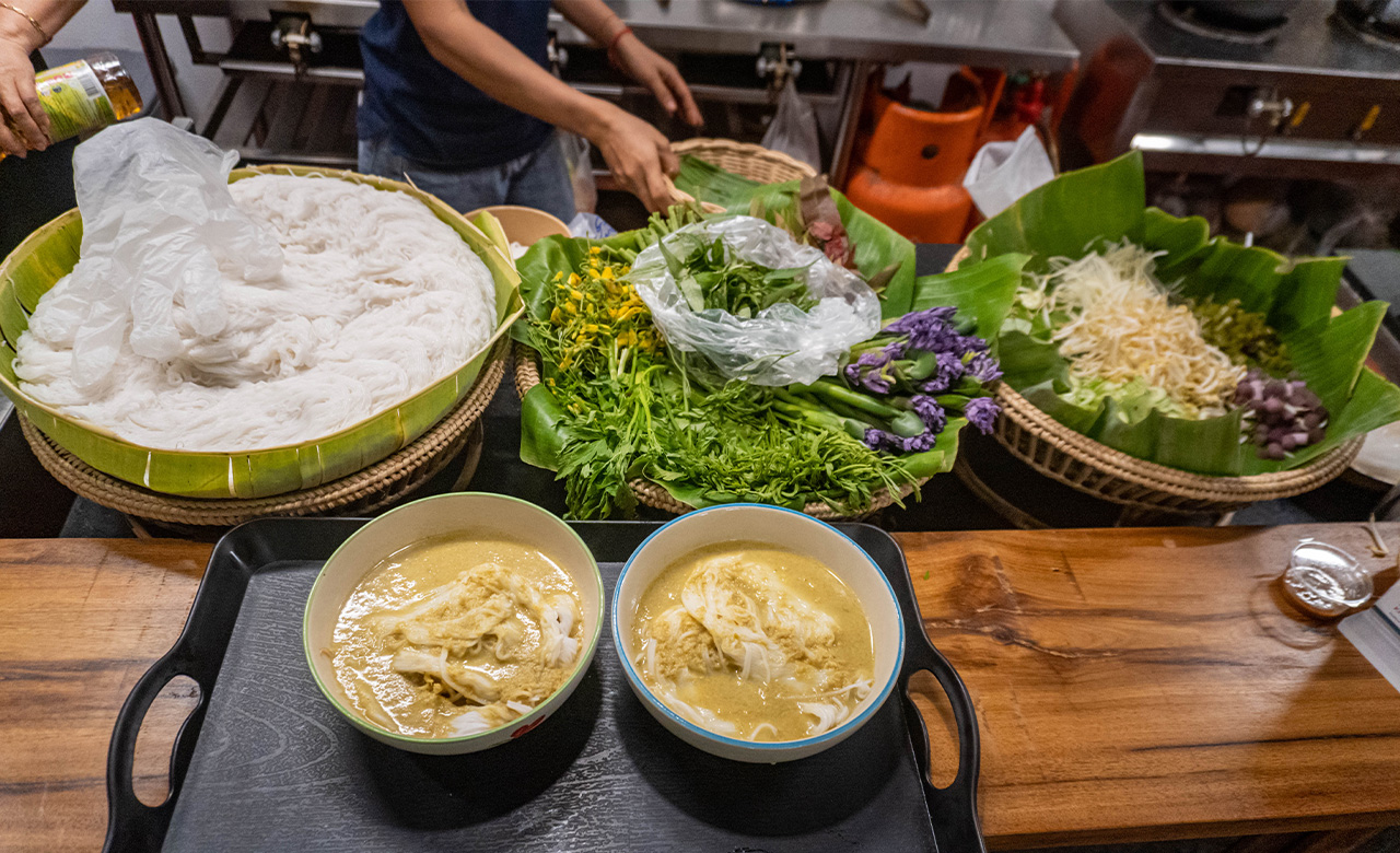 我们将带您去当地的餐厅,品尝柬埔寨面条配传统汤或咖哩鸡汤。