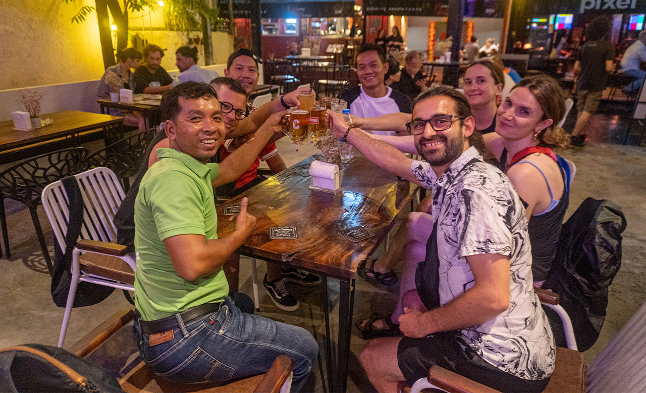 享受金边一个难忘的夜晚,从沿着湄公河和洞里萨河的日落巡游开始,并提供免费饮料和当地小吃。探索历史悠久的塔山寺,这是该市最高的寺庙,然后在当地餐厅品尝传统的柬埔寨面条。参观标志性的独立纪念碑,这是柬埔寨自由的象征,然后在巴萨克巷结束您的夜晚,这是一个充满活力的夜生活热点,非常适合享用鸡尾酒和当地生啤酒。在返回酒店之前,文化、美食和娱乐的完美融合!