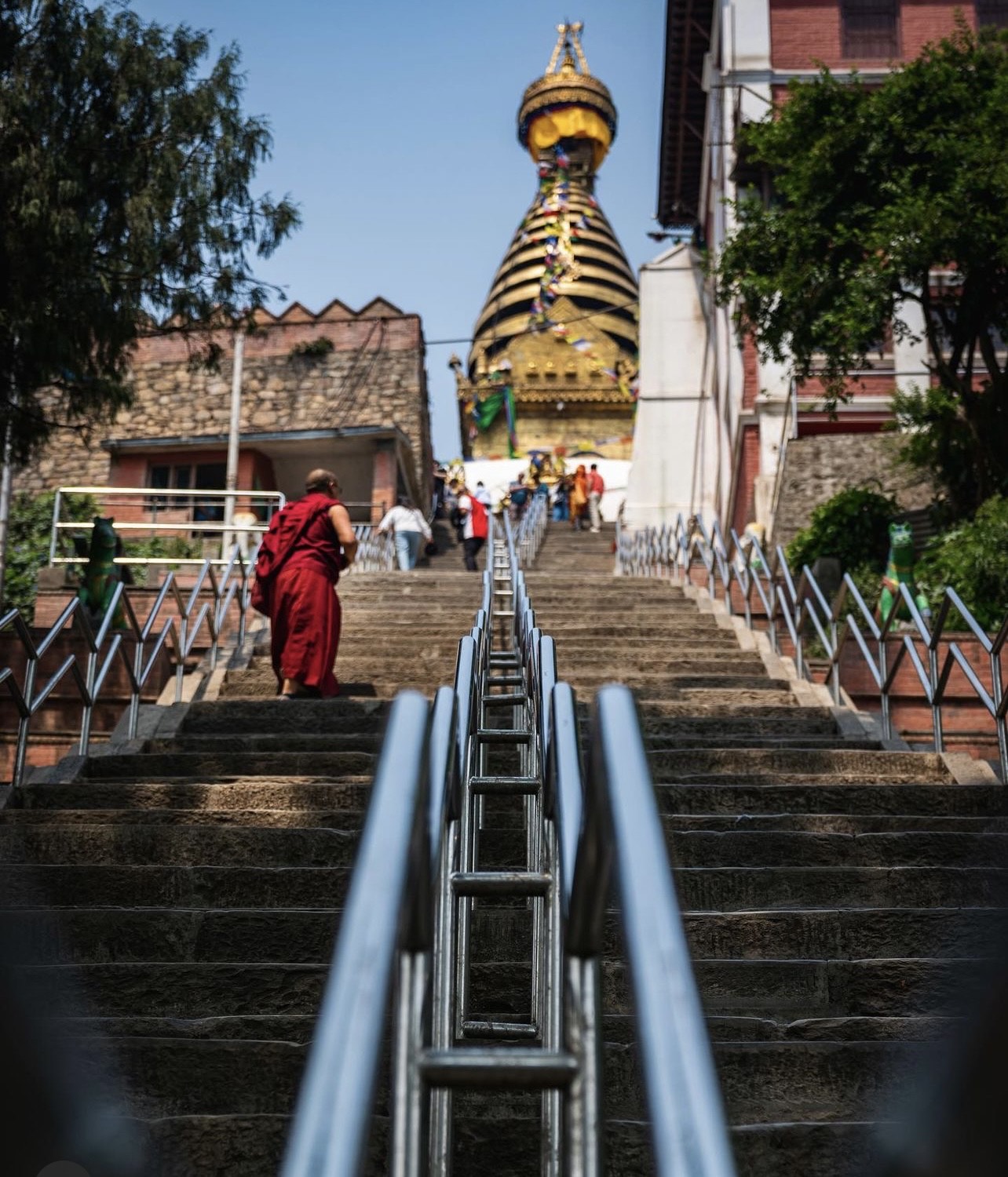 首先是猴子庙,猴子在那里漫步,从高处可以看到加德满都。
