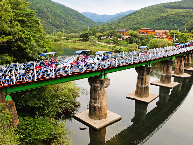 闻庆铁路自行车是在20年前由运输煤炭的铁路开发出来的,是韩国第一辆铁路自行车。