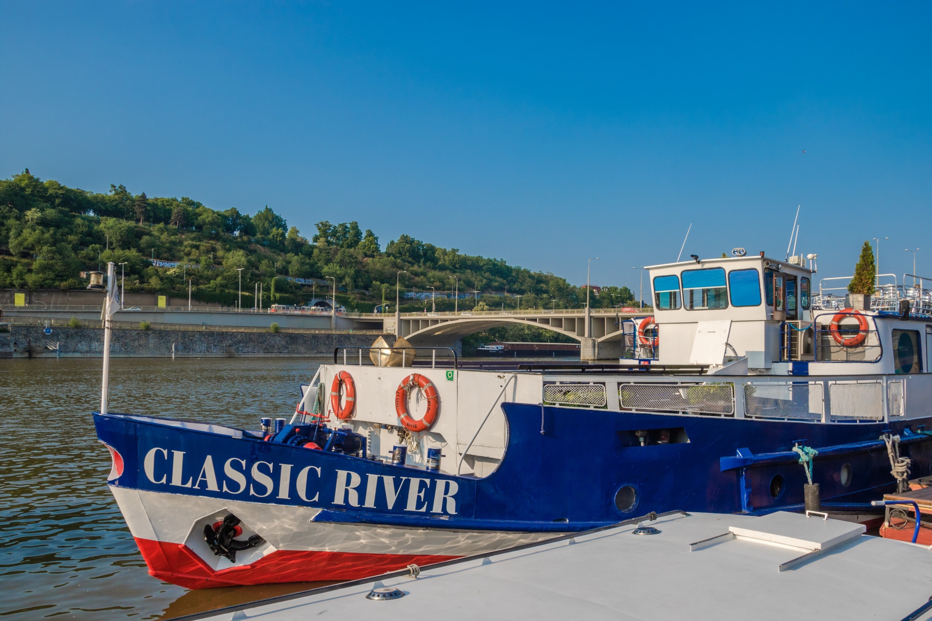 乘坐全景游船沿着美丽的伏尔塔瓦河游览,感受布拉格的魅力