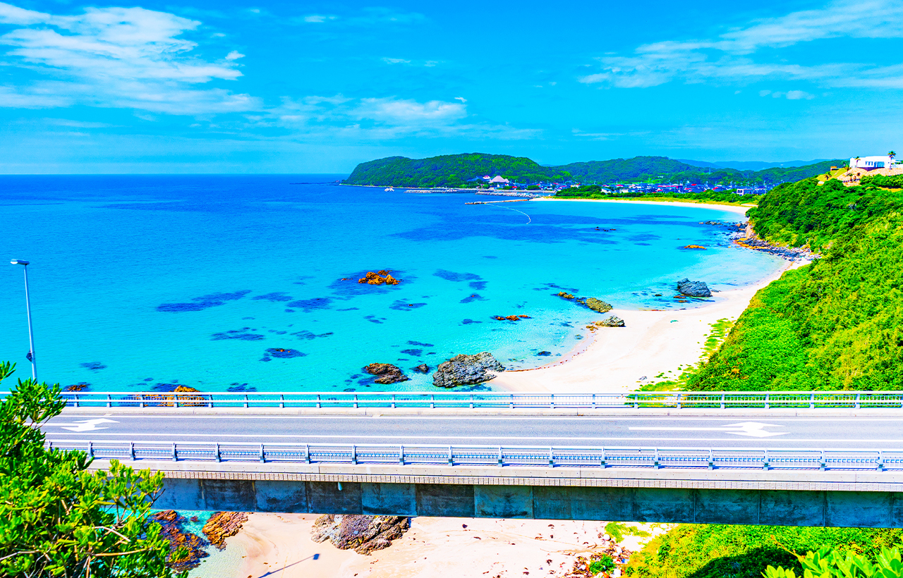 经常出现在电视广告中的角岛大桥是日本景致绝美的大桥之一。角岛大桥对机动车通行免费开放,1780米的长桥横跨在湛蓝的大海上,壮观的桥与海水之蓝调和一致的美景非同一般!