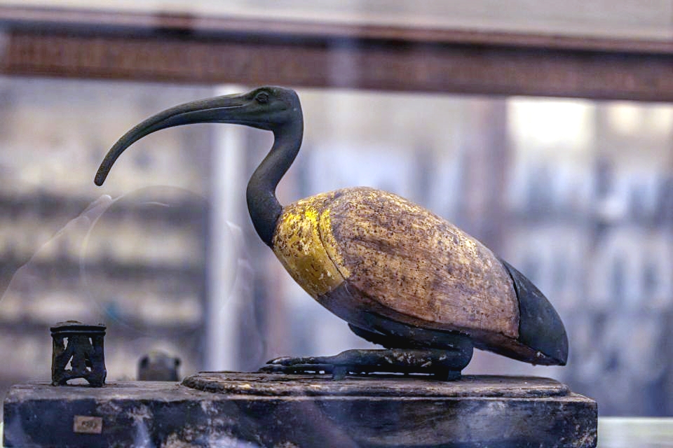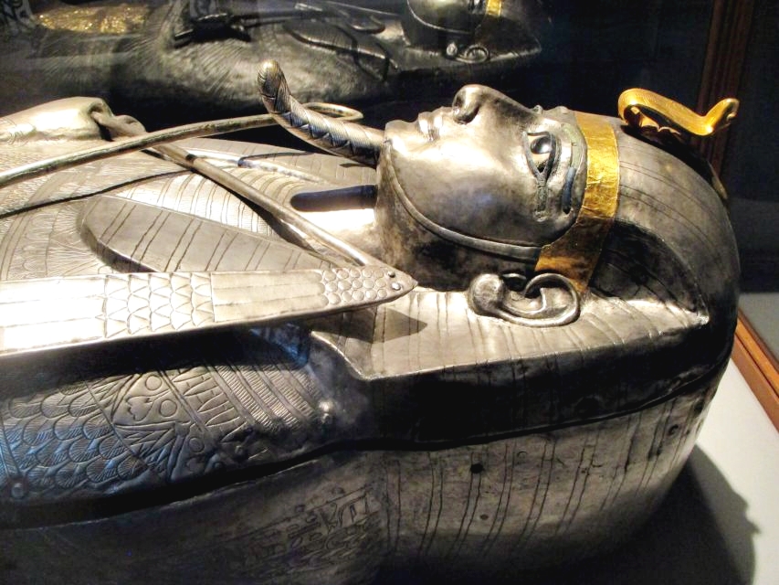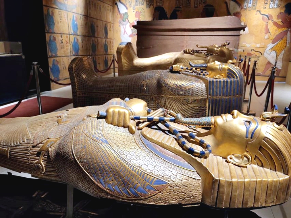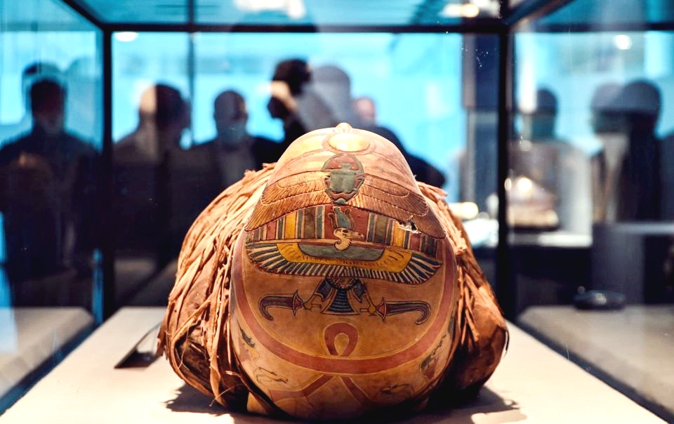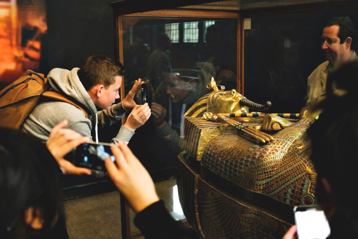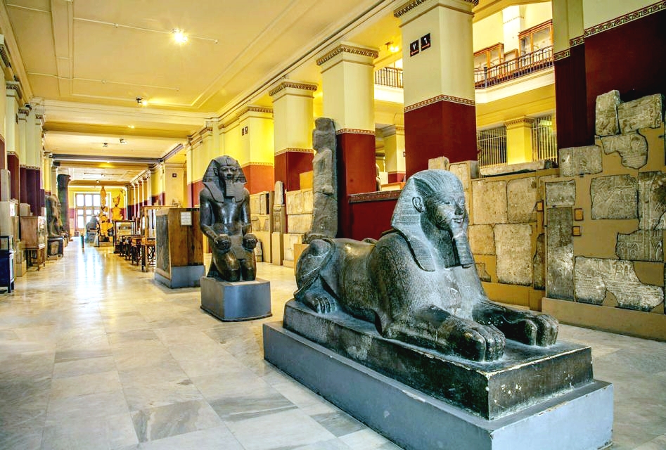 在开罗,在解放广场的埃及博物馆与埃及古物学家导游会面,了解古埃及的木乃伊制作艺术。