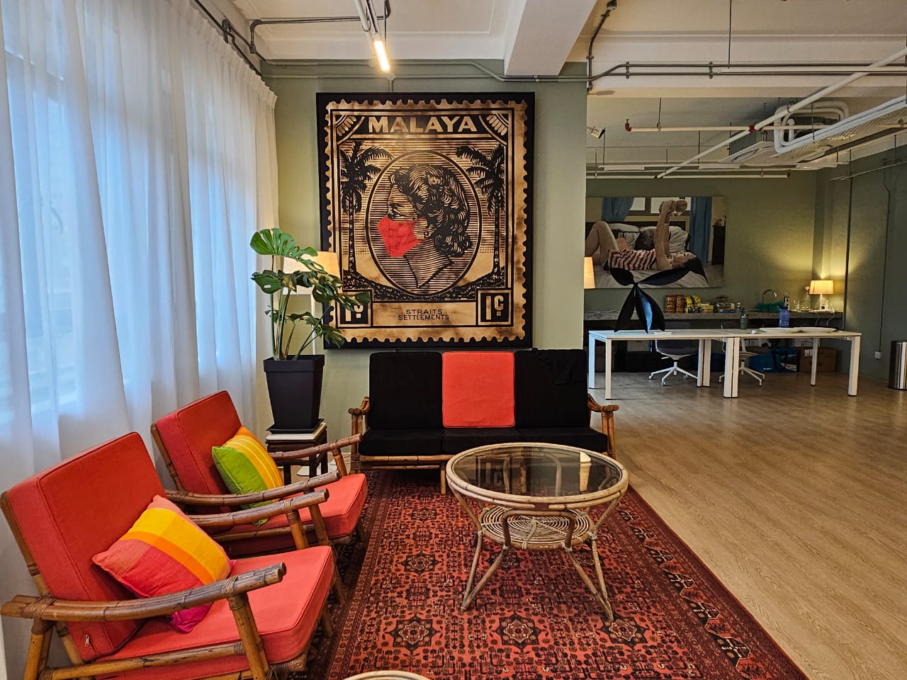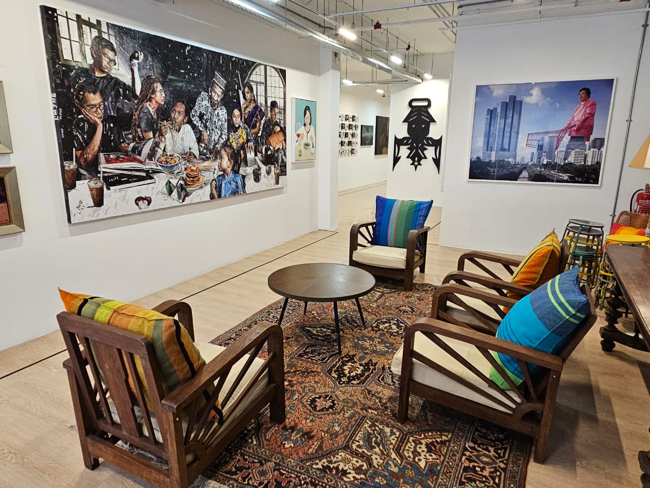 累了可以先休息一下,坐下来欣赏旁边的画