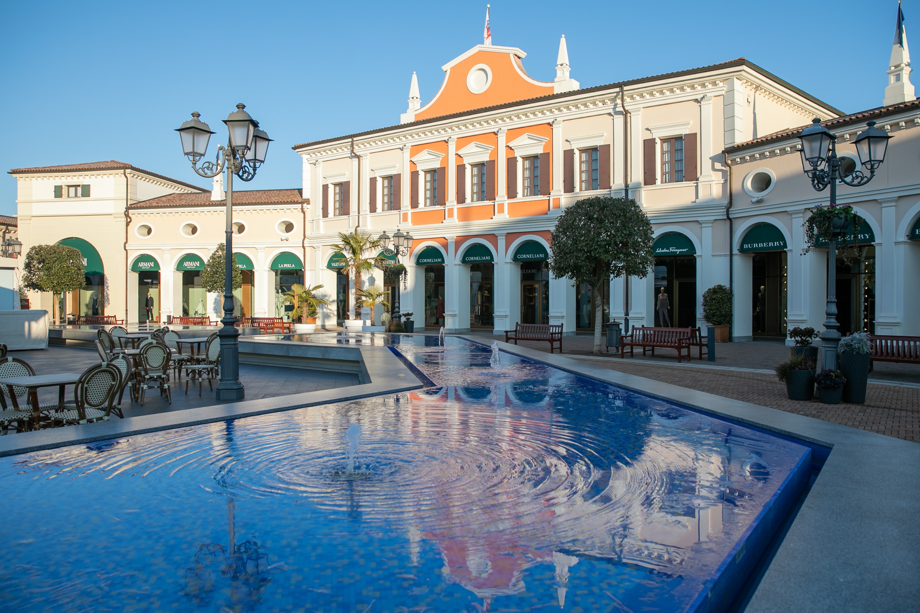威尼斯拥有宏伟的宫殿和错综复杂的运河,是许多人心目中美丽奢华的城市。 Designer Outlet Noventa di Piave距离威尼斯和特雷维索仅45分钟车程。受威尼斯宫殿建筑风格的启发,Noventa di Piave 设计师奥特莱斯以马赛克和壁画装饰。拥有Armani、Bottega Veneta、Burberry、Fendi、Jill Sander、Prada、Marni、Sergio Rossi等许多**知名设计师品牌**,皆可享**30%至70%**折扣。这里还有很多高档的**餐厅**和**酒吧**和**儿童游乐区**,对于时尚达人和选择携家出游的游客来说是一个不错的选择。