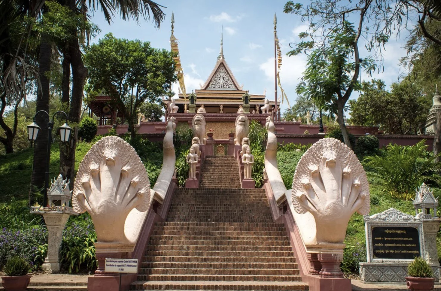 参观柬埔寨首都金边的独立纪念碑,该纪念碑建于 1958 年,为纪念柬埔寨 1953 年脱离法国而独立。