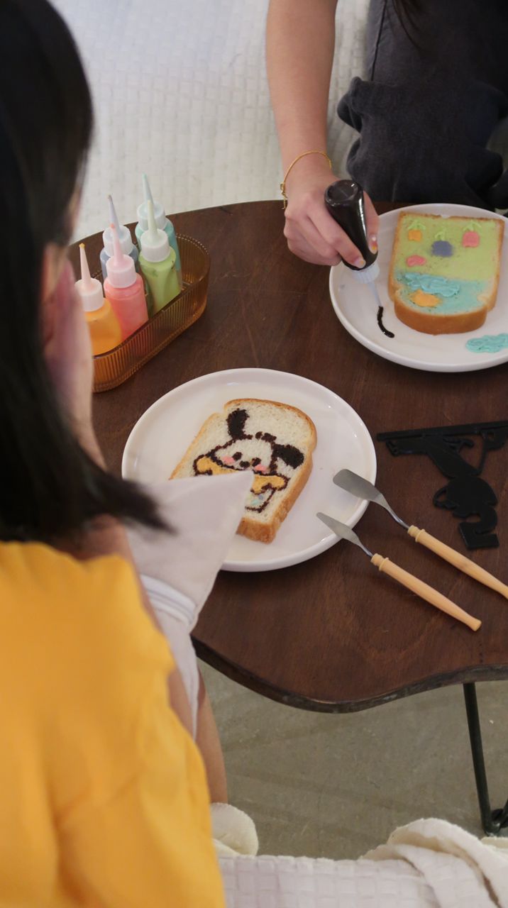 找到舒适的座位后,工作人员将为您提供吐司绘画套装,然后快速介绍活动。向您介绍情况后,工作人员将把吐司留给您,让您将创造力转化为可食用的杰作。