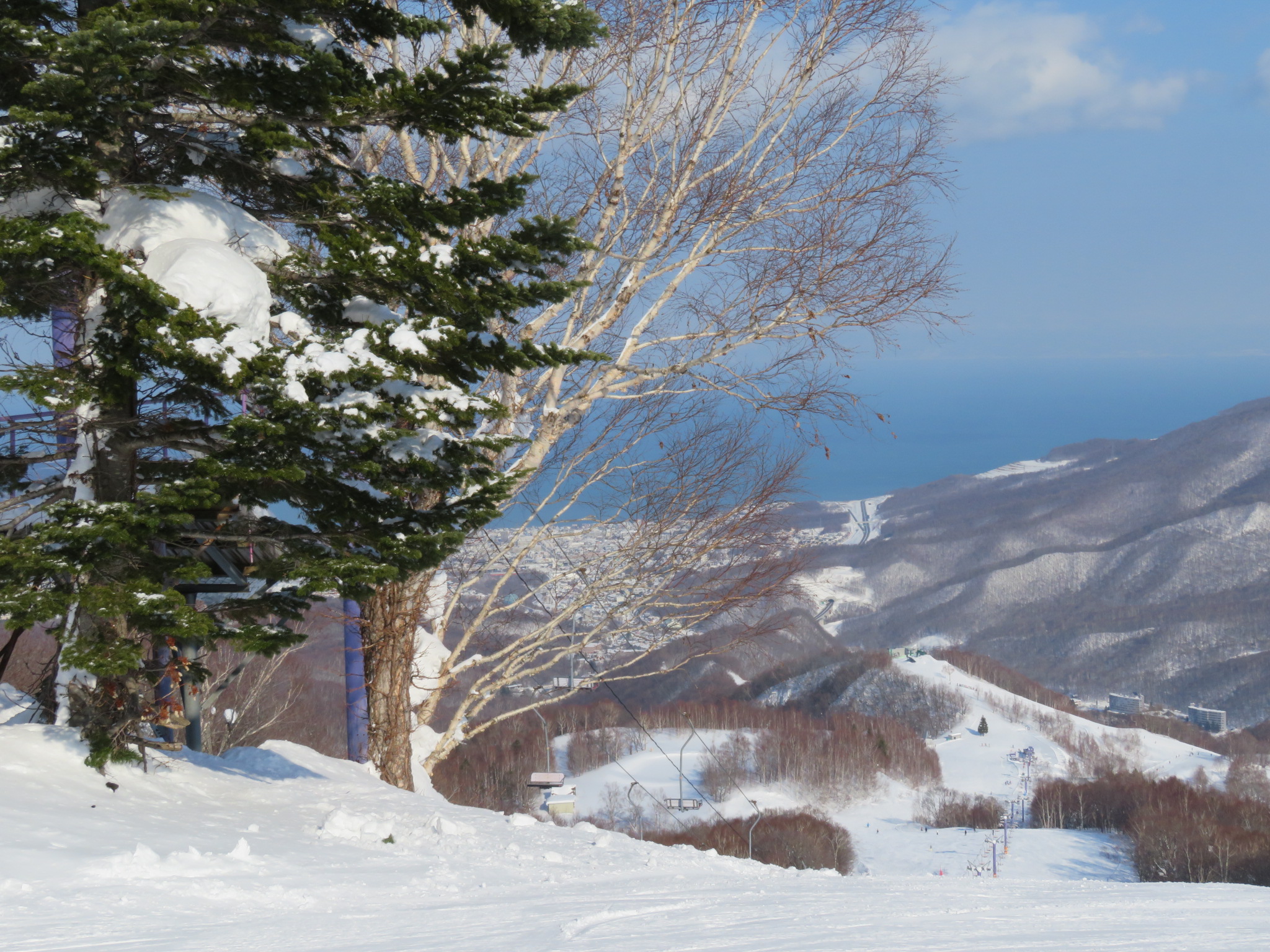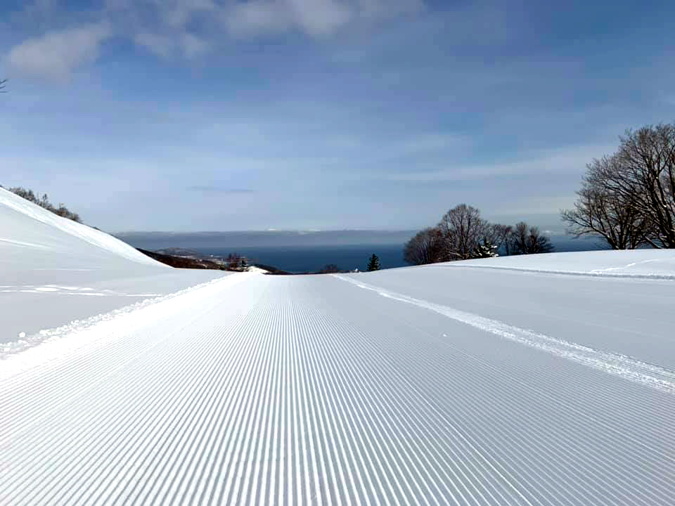 经过一个大弯道后,观景点便呈现眼前日本海。有些滑雪道会让您体验到向大海滑雪的感觉。
