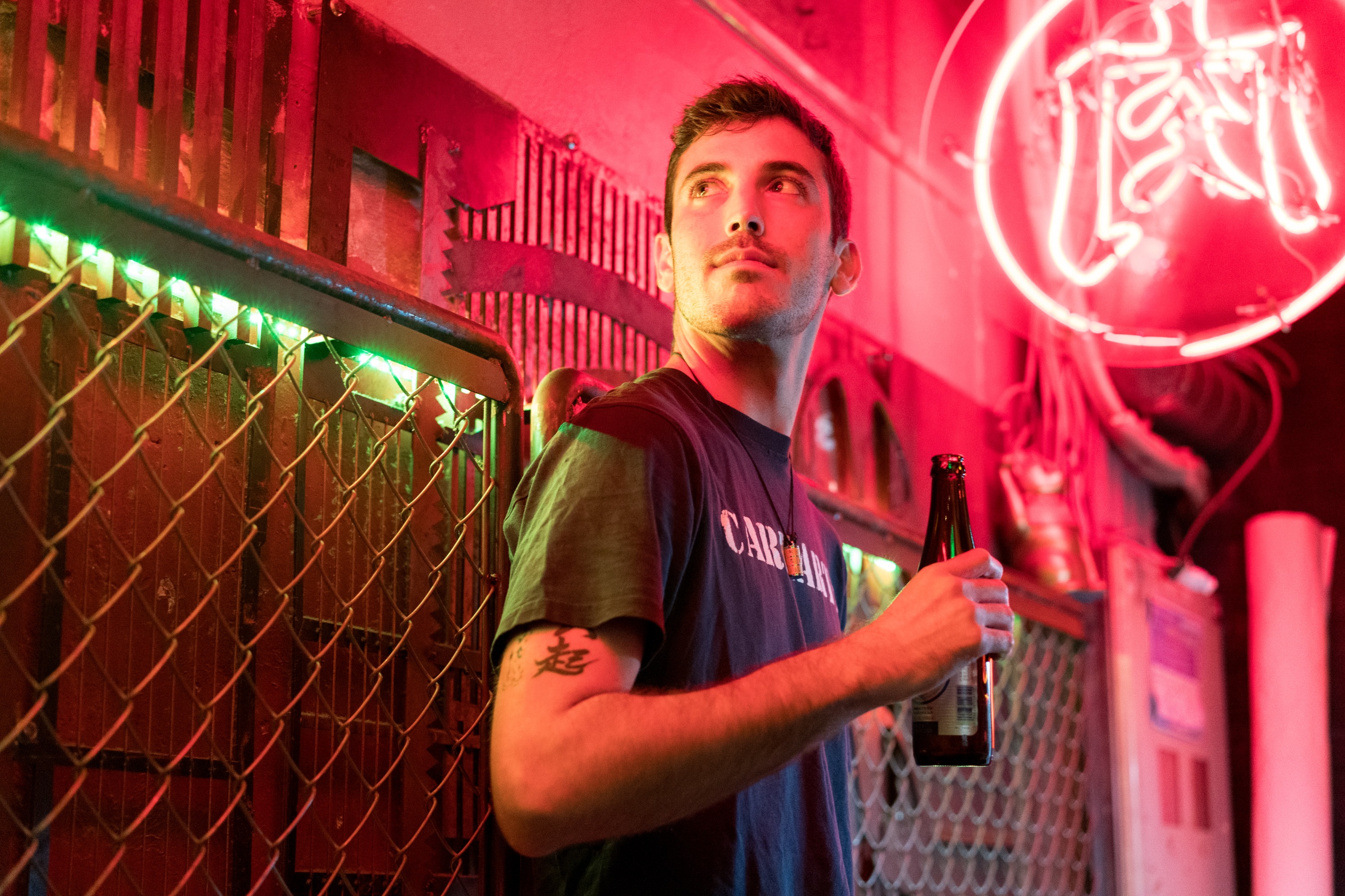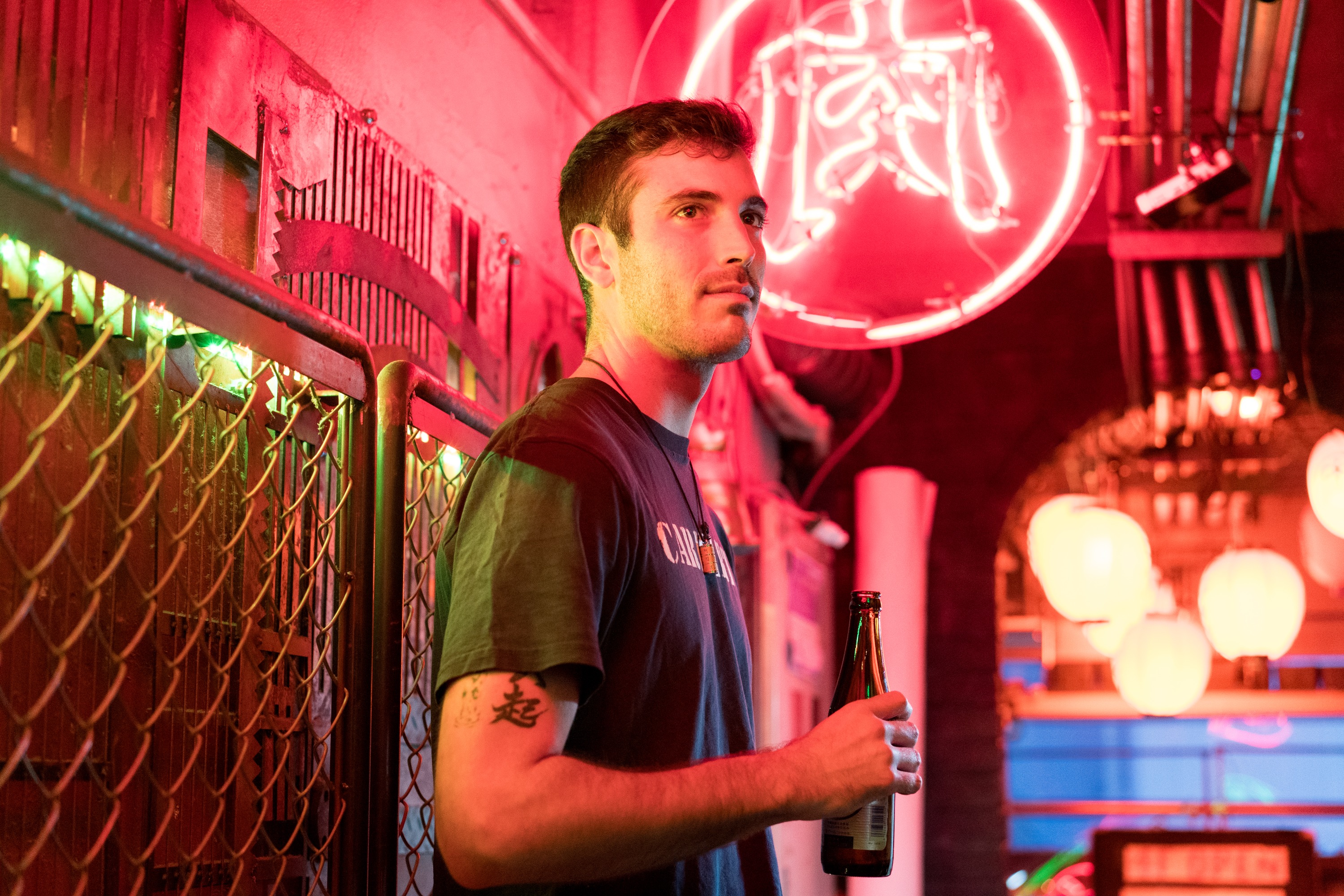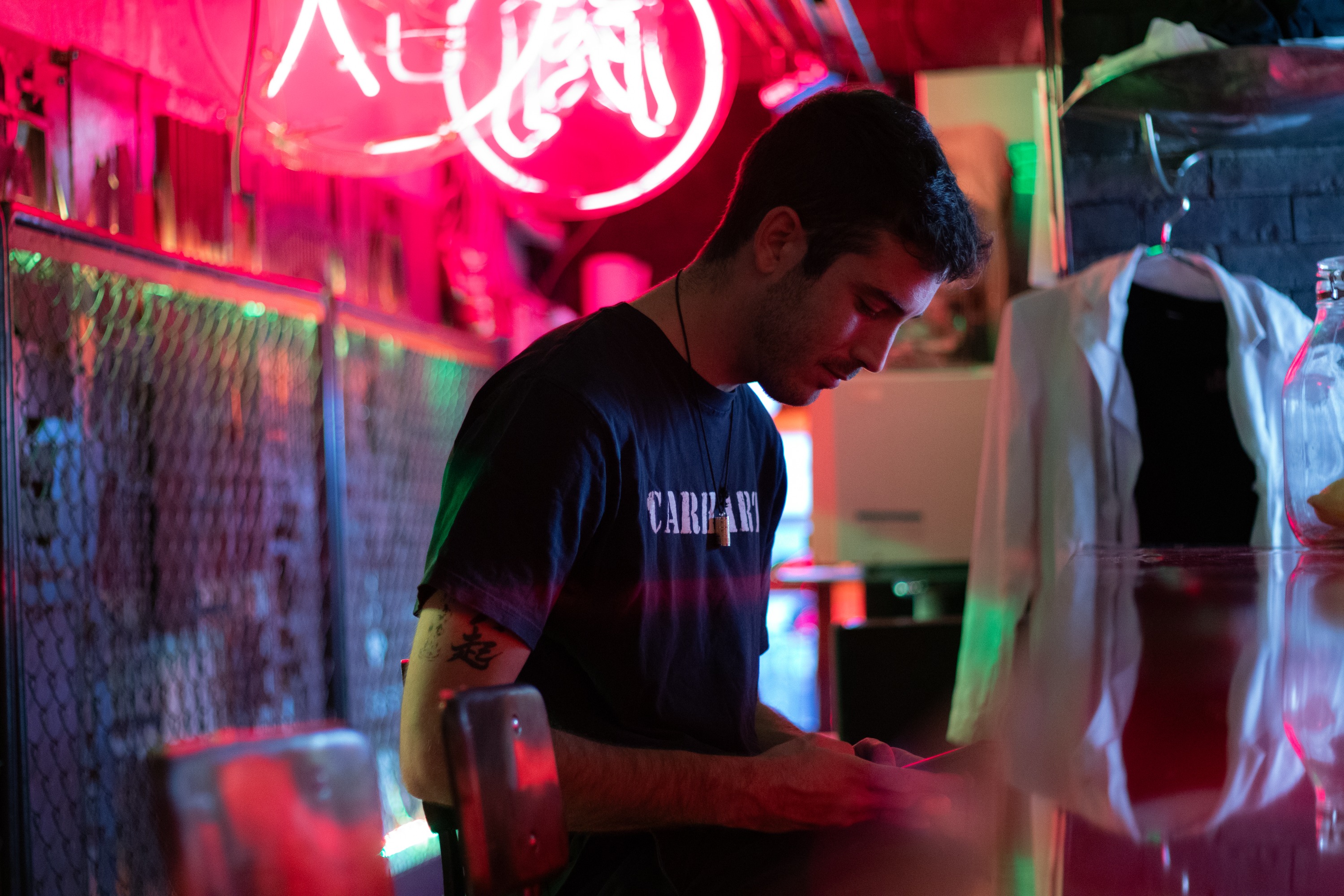 在专为我们预留的隐秘赛博朋克风格酒吧拍摄令人惊叹的照片